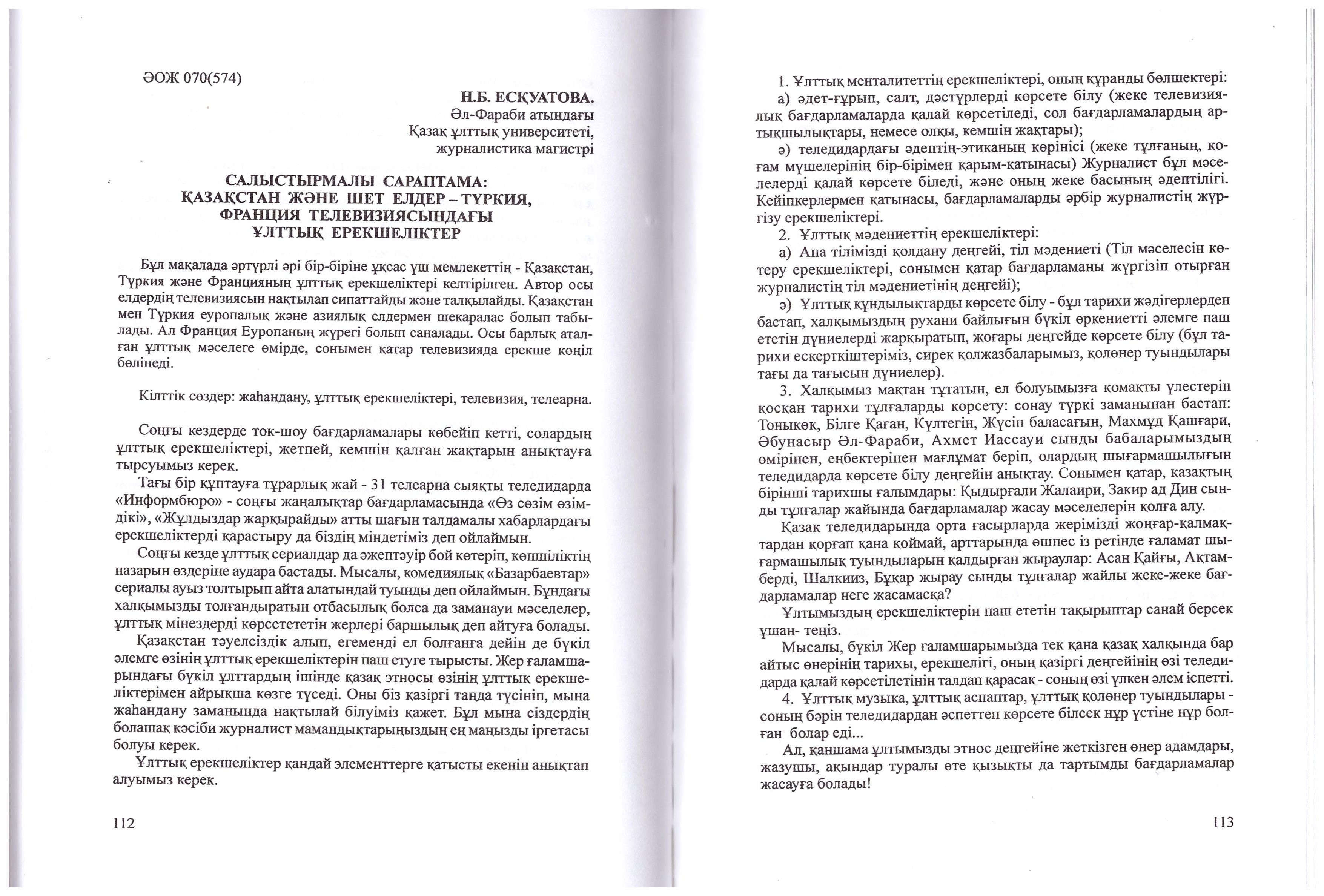 Салыстырмалы сараптама: Қазақстан және шет елдер - Түркия, Франция телевизиясындағы ұлттық ерекшеліктер.