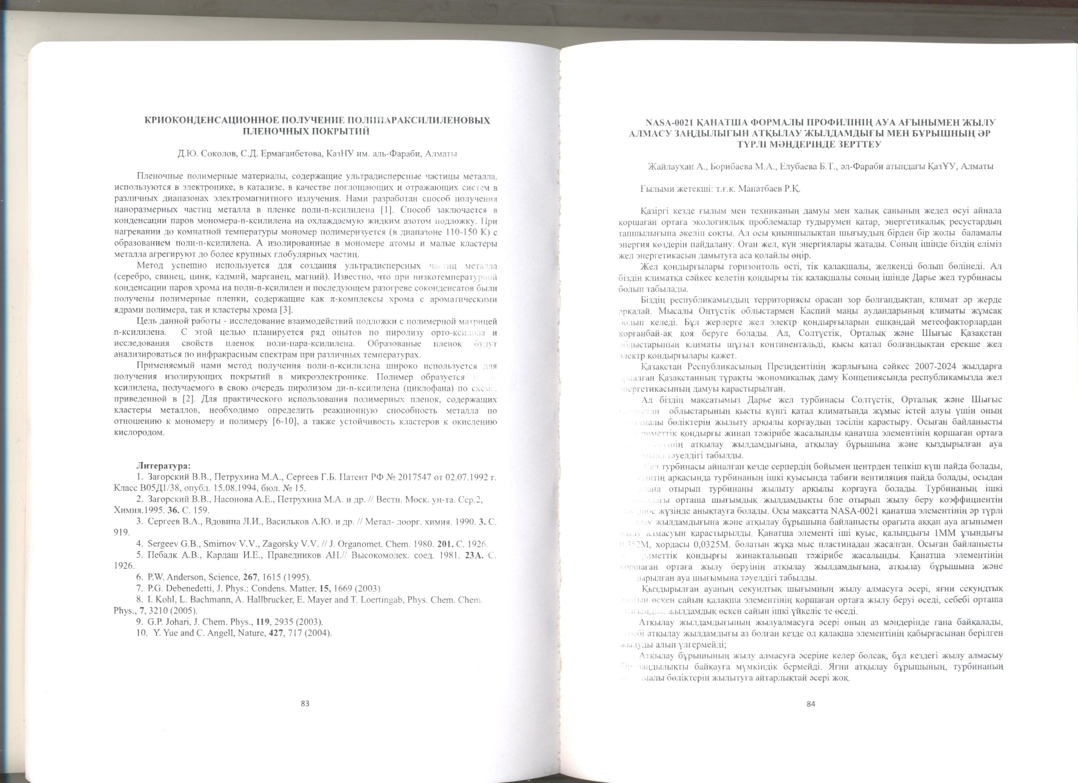 Ш.А. Ершин, А.К. Ершина, Р.К. Манатбаев, А.К. Тулепбергенов О некоторых сравнении теоретических и экспериментальных исследовании ветротурбины карусельного типа // Сборник тезисов 8-ой Меж-й научной конф-и «Современные достижения физики и фунд-е физическое образование». (9-11 октября). – Алматы, 2013. – С. 72-73.