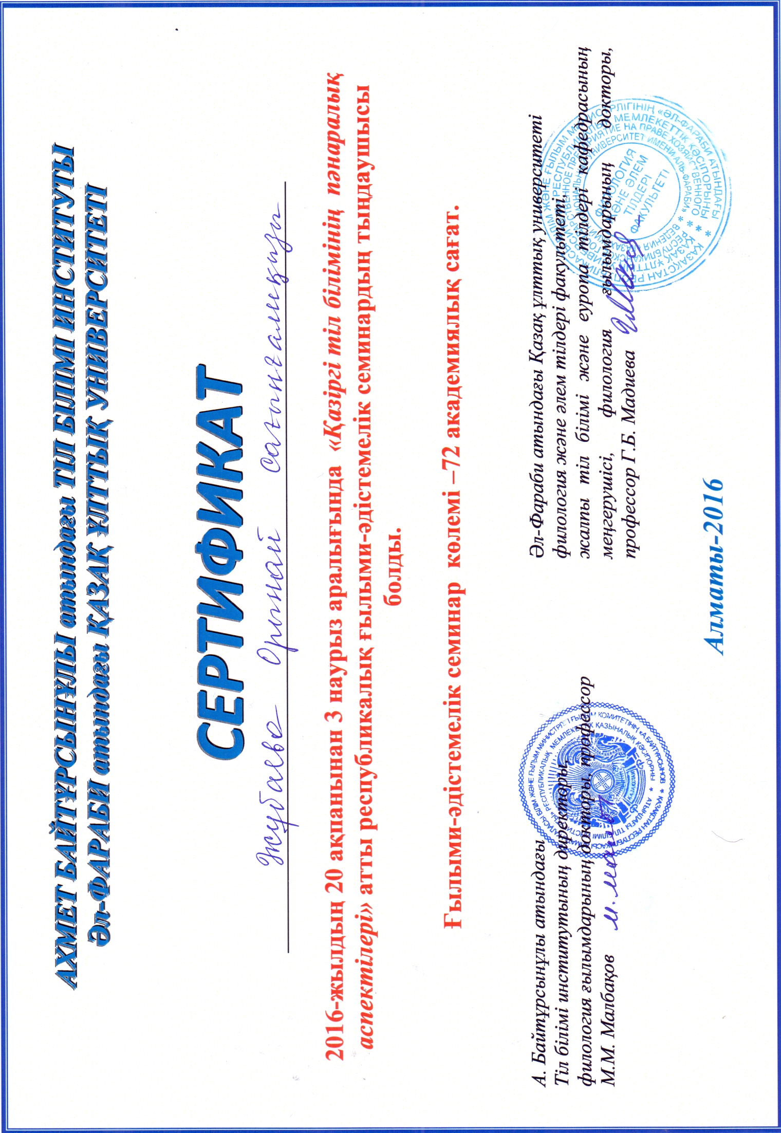 Главная / Филологический / Кафедра казахского языкознания имени А. Байтурсынулы / Труды (тезисы, доклады) в сборниках и материалах научных конференций, симпозиумов, семинаров