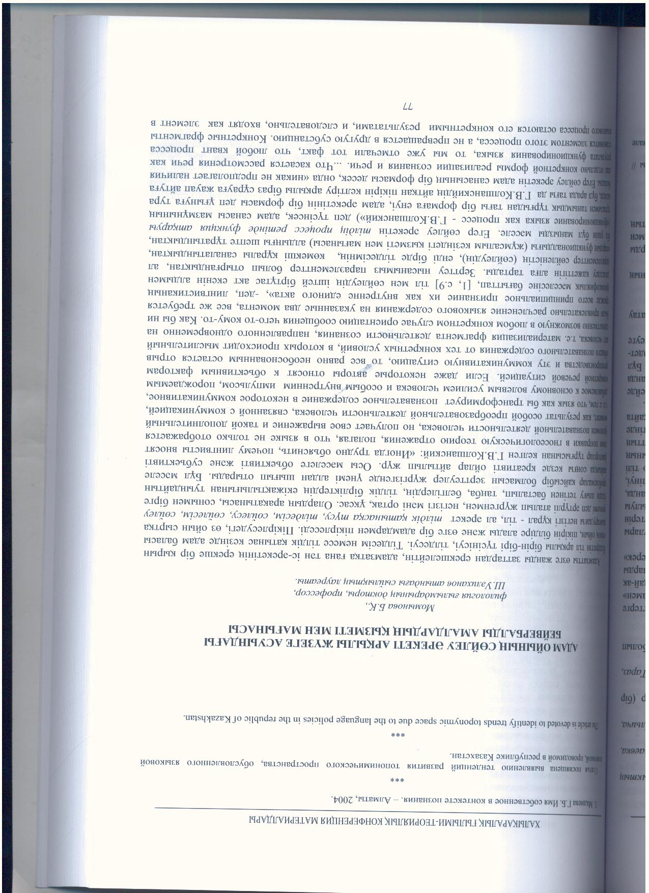 Главная / Филологический / Кафедра казахского языкознания имени А. Байтурсынулы / Труды (тезисы, доклады) в сборниках и материалах научных конференций, симпозиумов, семинаров