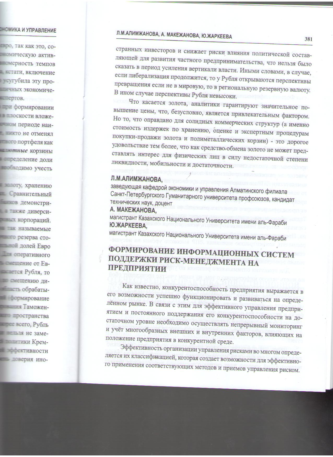 Формирование информа-ционных систем поддержки риск-менеджмента на предприятии. 2012 - г. 4 - стр.