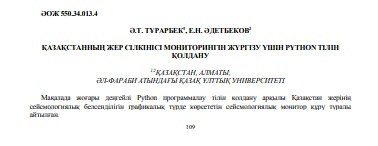ҚАЗАҚСТАННЫҢ ЖЕР СІЛКІНІСІ МОНИТОРИНГІН ЖҮРГІЗУ ҮШІН PYTHON ТІЛІН