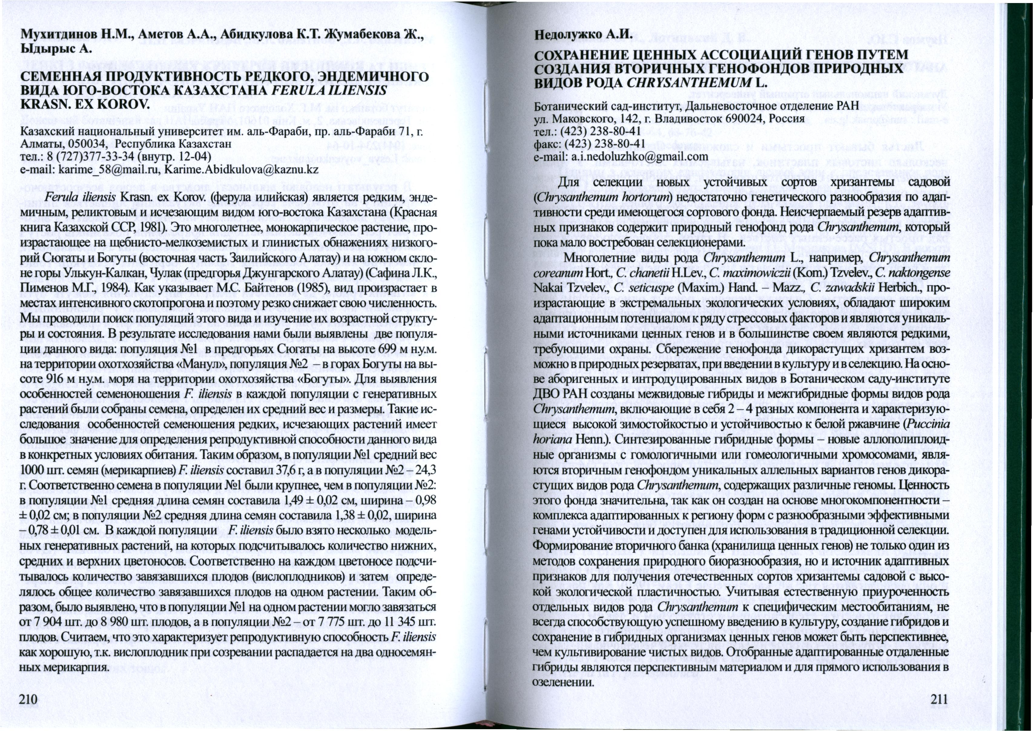 Семенная продуктивность редкого, эндемичного вида юго-востока Казахстана Ferula iliensis Krash. Ex Kozov