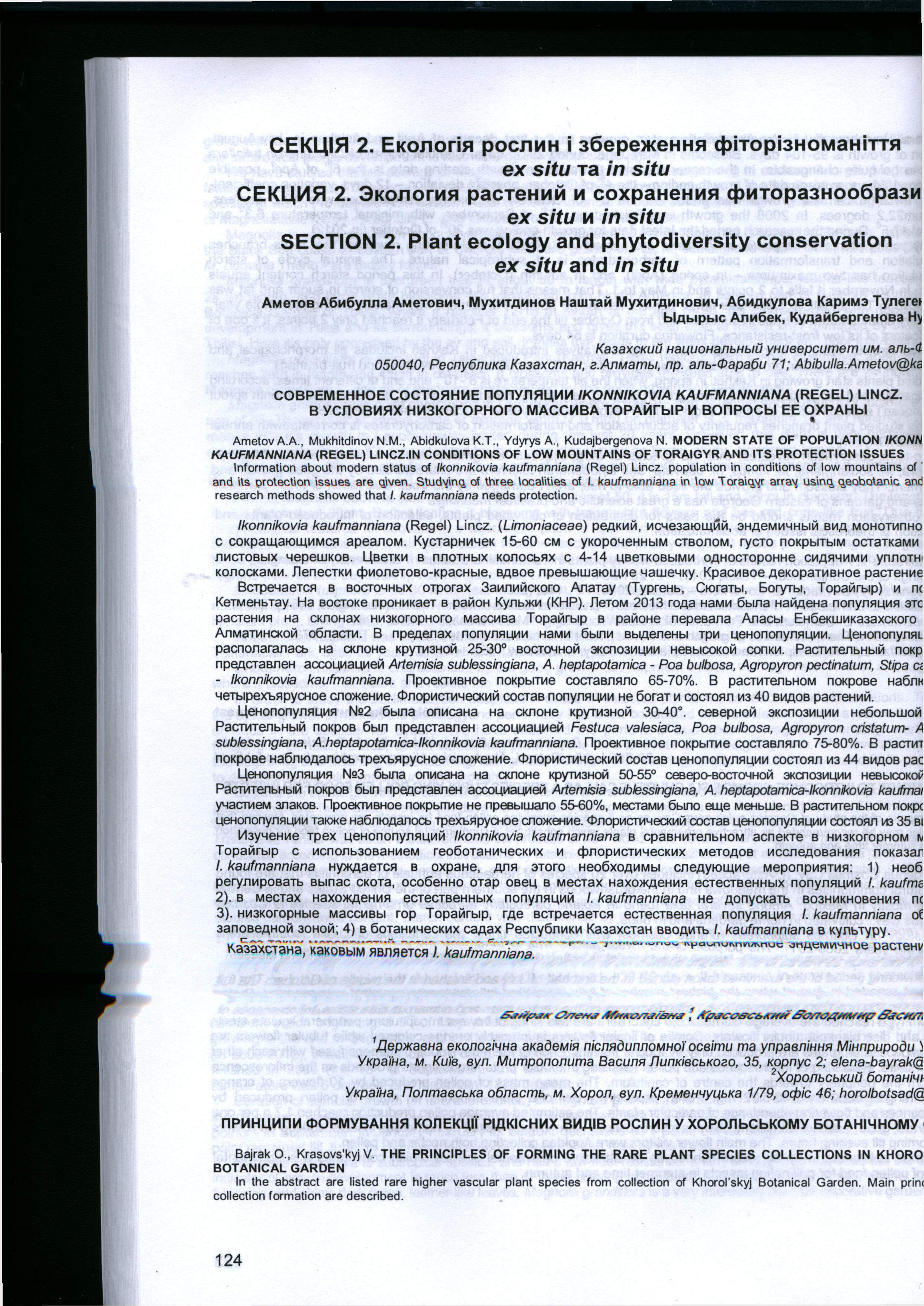 Сирек Кауфман Иконниковиясы (Ikonnikovia kaufmanniana (Regel) Lincz.) Популяцияларының Қазіргі Жағдайының Топырағының Кейбір Ерекшеліктерімен Байланысы