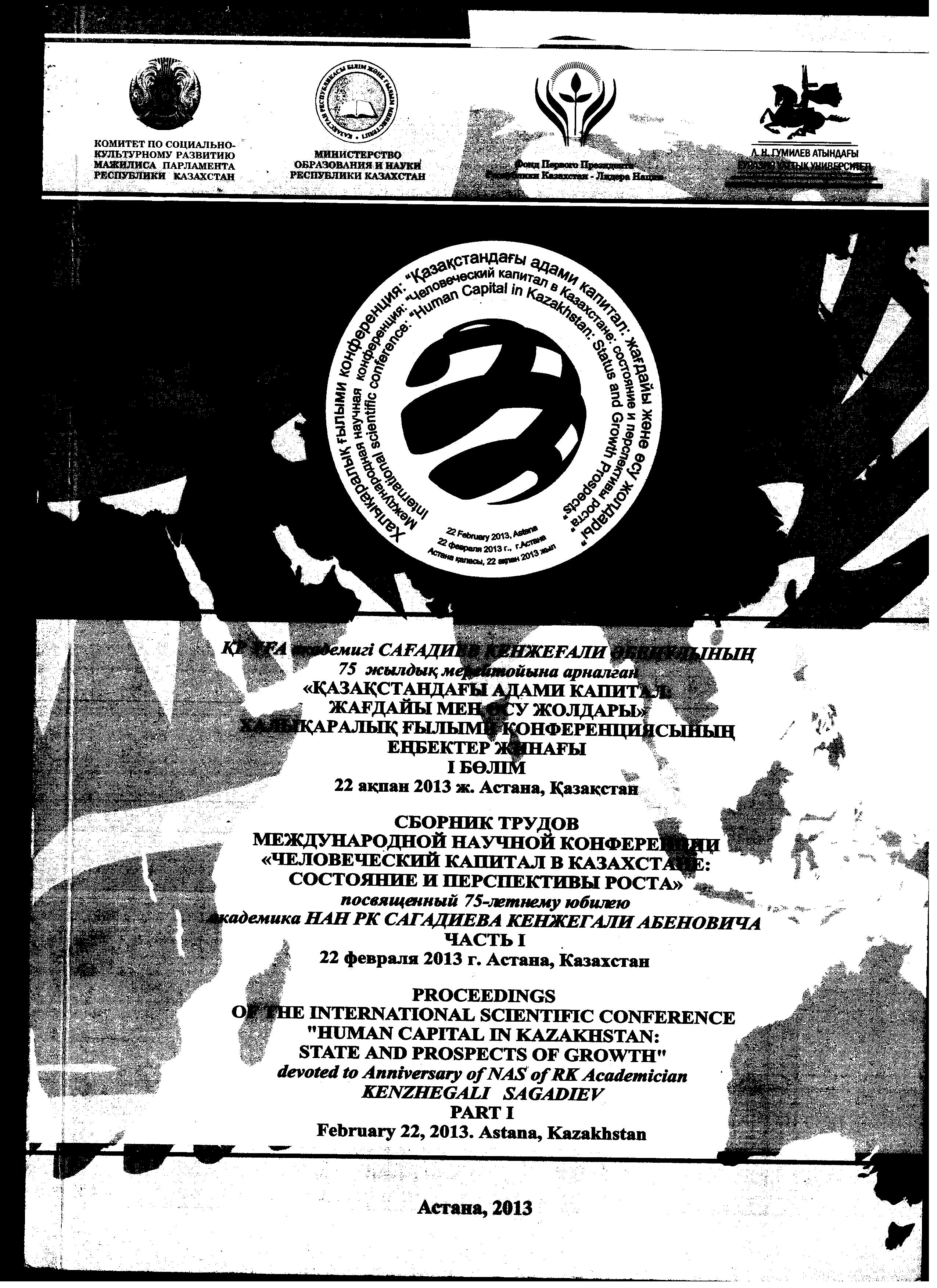 Конференция"Перспективы развития человеческих ресурсов в условиях глобализации.", уровень Международный, КАЗАХСТАН, Алматы, КазНУ им. аль-Фараби, 07.12.2012-08.12.2012