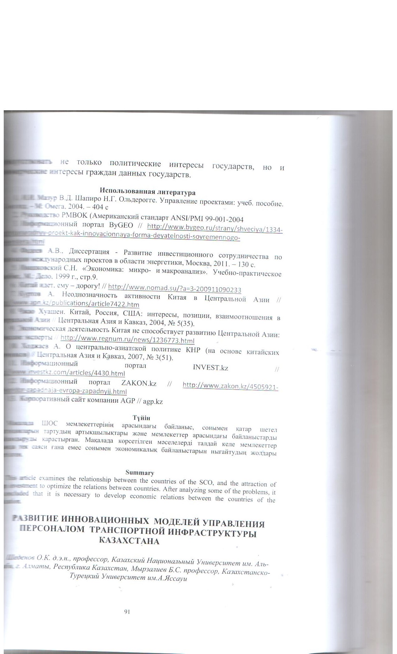 Развитие инновационных моделей управления персоналом транспортной инфраструктуры Казахстана