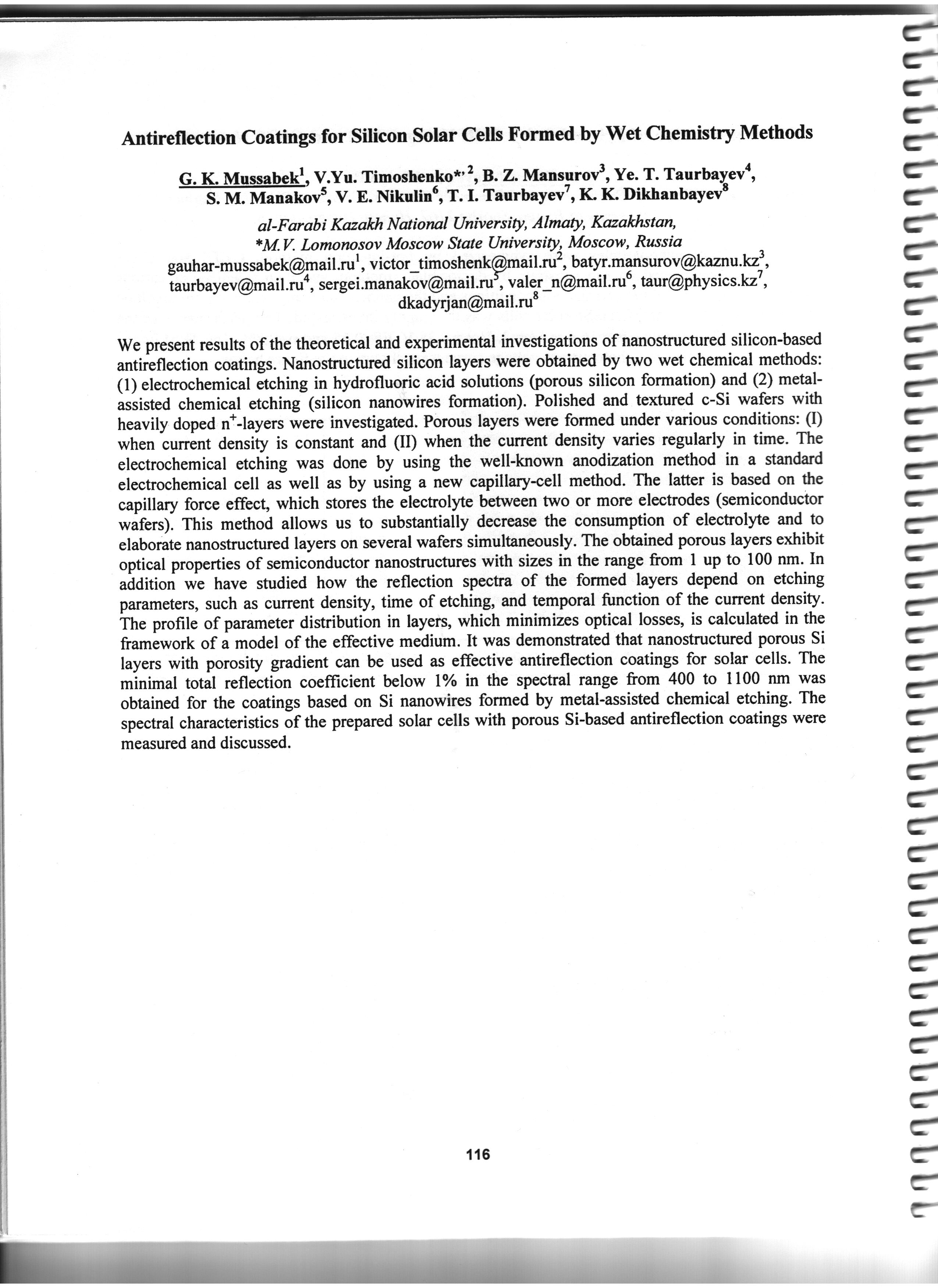 Басты бет / Физика-техникалық / Қатты дене физикасы және жаңа материалдар технологиясы / Жинақтардағы, ғылыми мәслихаттардағы, симпозиумдардағы, семинарлардағы еңбектер (тезистер, баяндамалар)