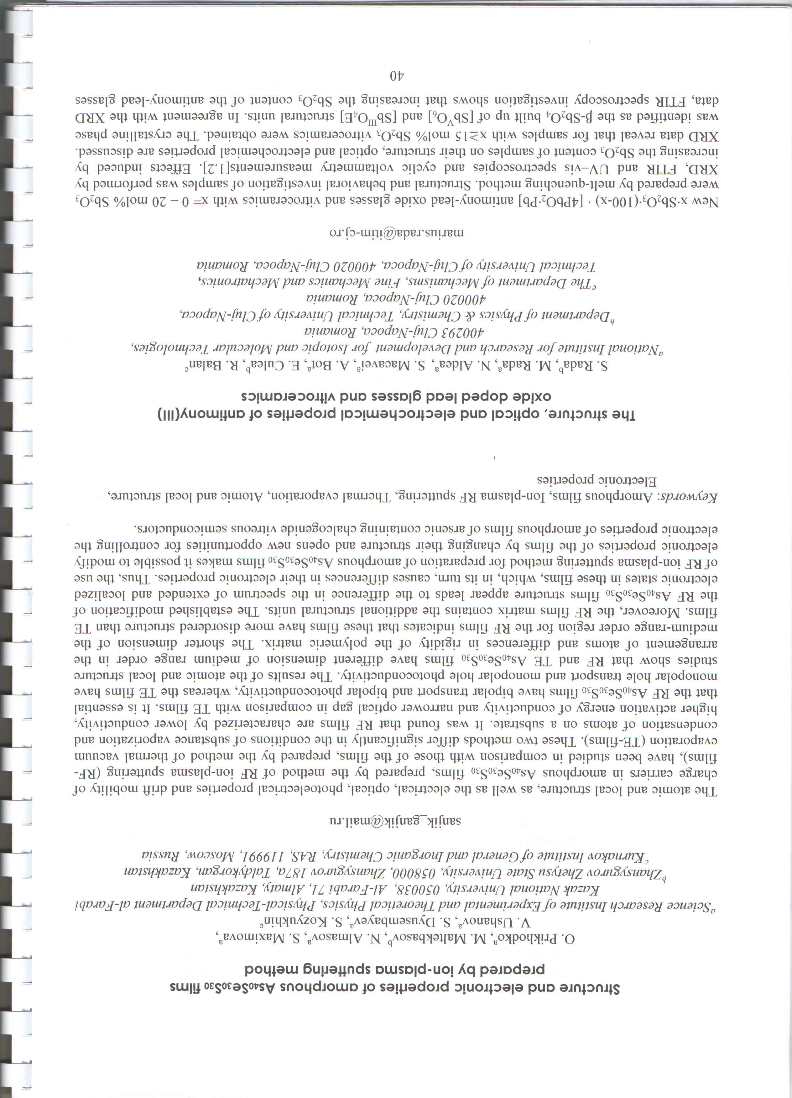 Басты бет / Физика-техникалық / Қатты дене физикасы және жаңа материалдар технологиясы / Жинақтардағы, ғылыми мәслихаттардағы, симпозиумдардағы, семинарлардағы еңбектер (тезистер, баяндамалар)