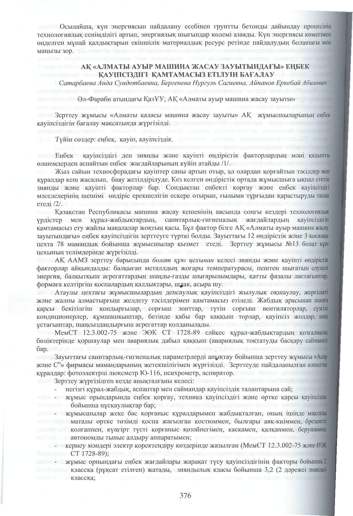 АҚ «Алматы ауыр машина жасау зауытындағы» еңбек қауіпсіздігі қамтамасыз етілуін бағалау