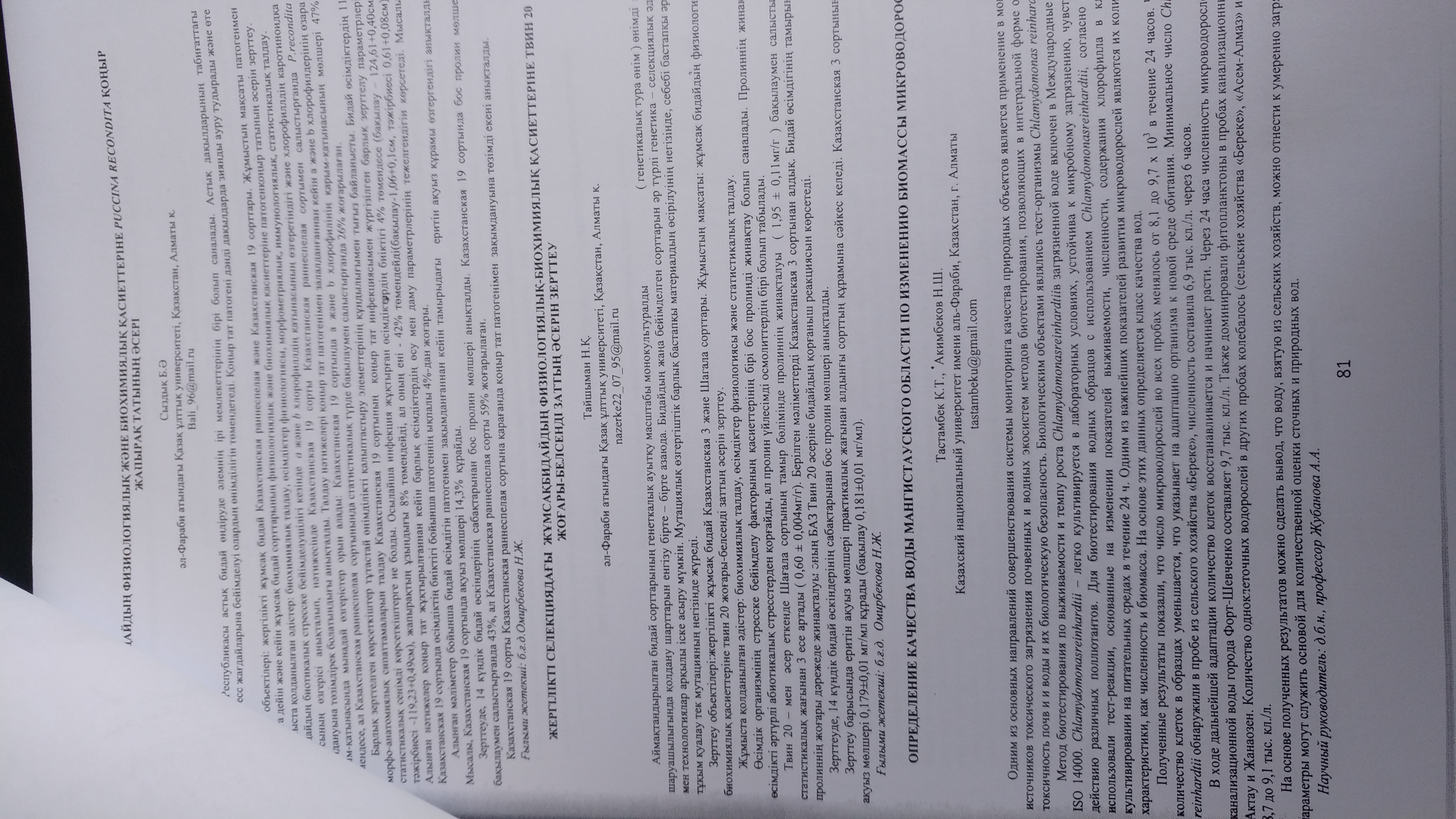 Басты бет / Биология және биотехнология / Биотехнология / Жинақтардағы, ғылыми мәслихаттардағы, симпозиумдардағы, семинарлардағы еңбектер (тезистер, баяндамалар)