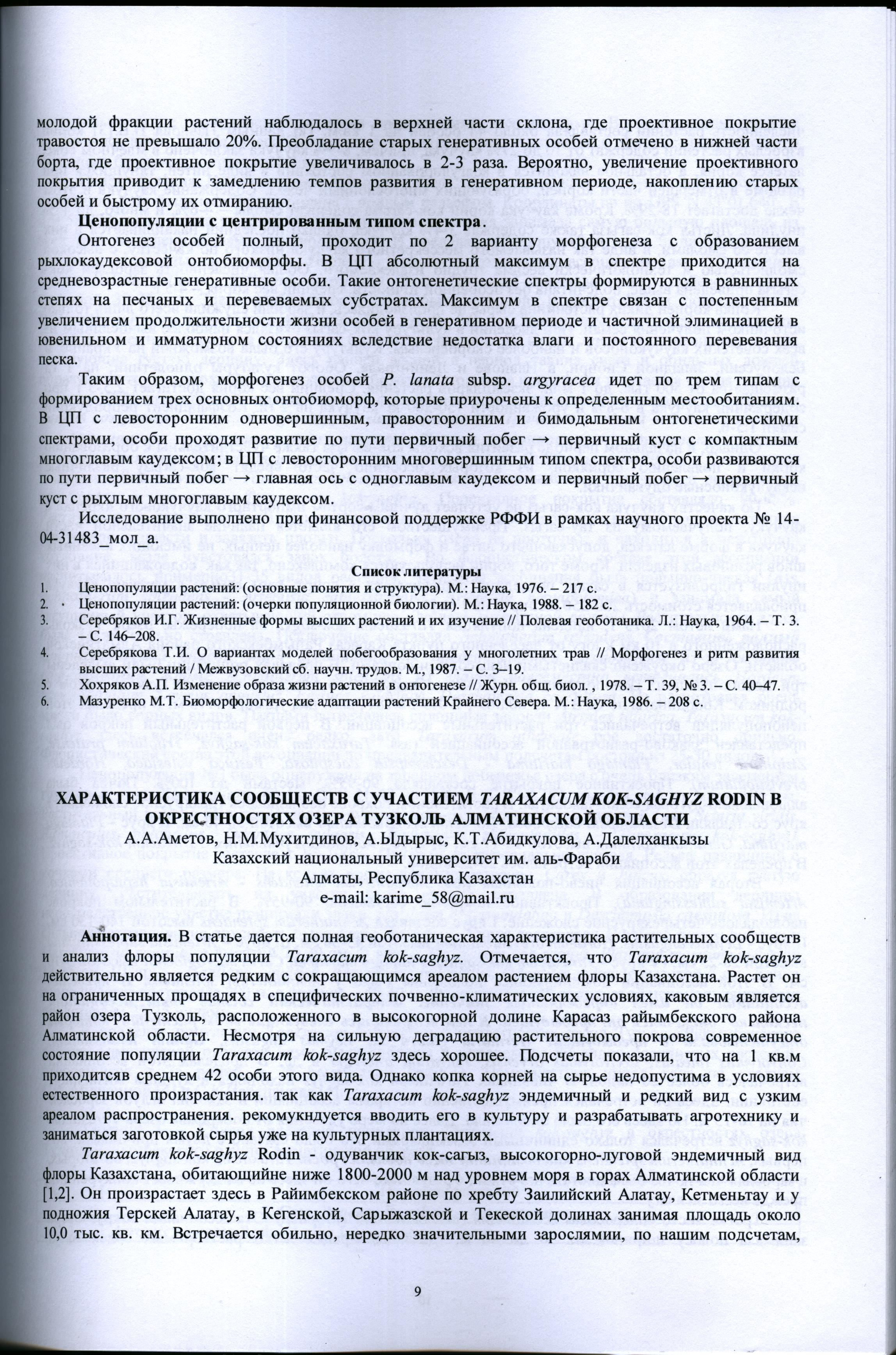 Сирек Кауфман Иконниковиясы (Ikonnikovia kaufmanniana (Regel) Lincz.) Популяцияларының Қазіргі Жағдайының Топырағының Кейбір Ерекшеліктерімен Байланысы