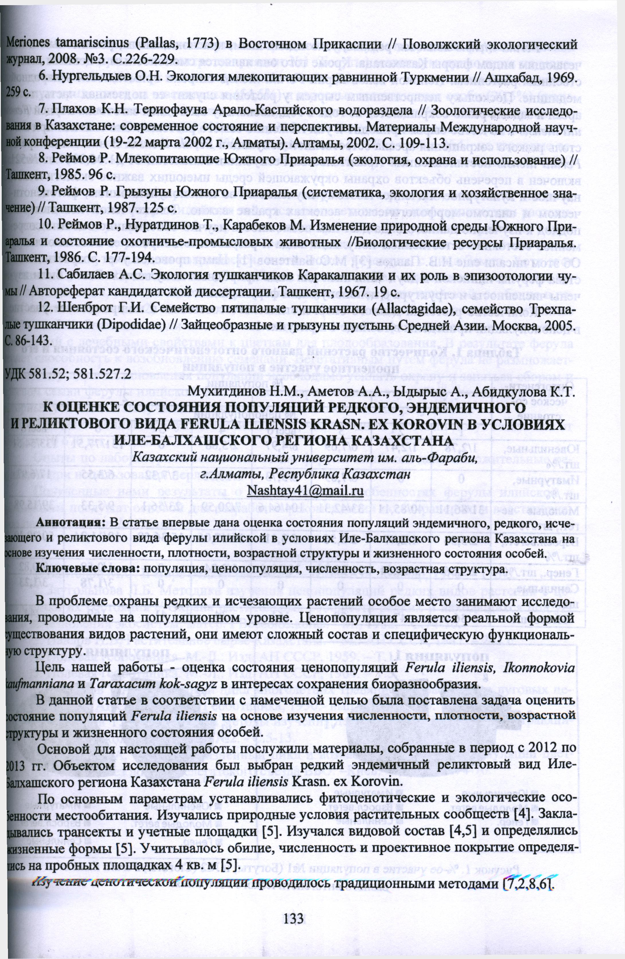 К оценке состояния популяций редкого, эндемичного и реликтового вида Ferula iliensis Krasn. ex Korov. в условиях Иле-Балхашского региона Казахстана
