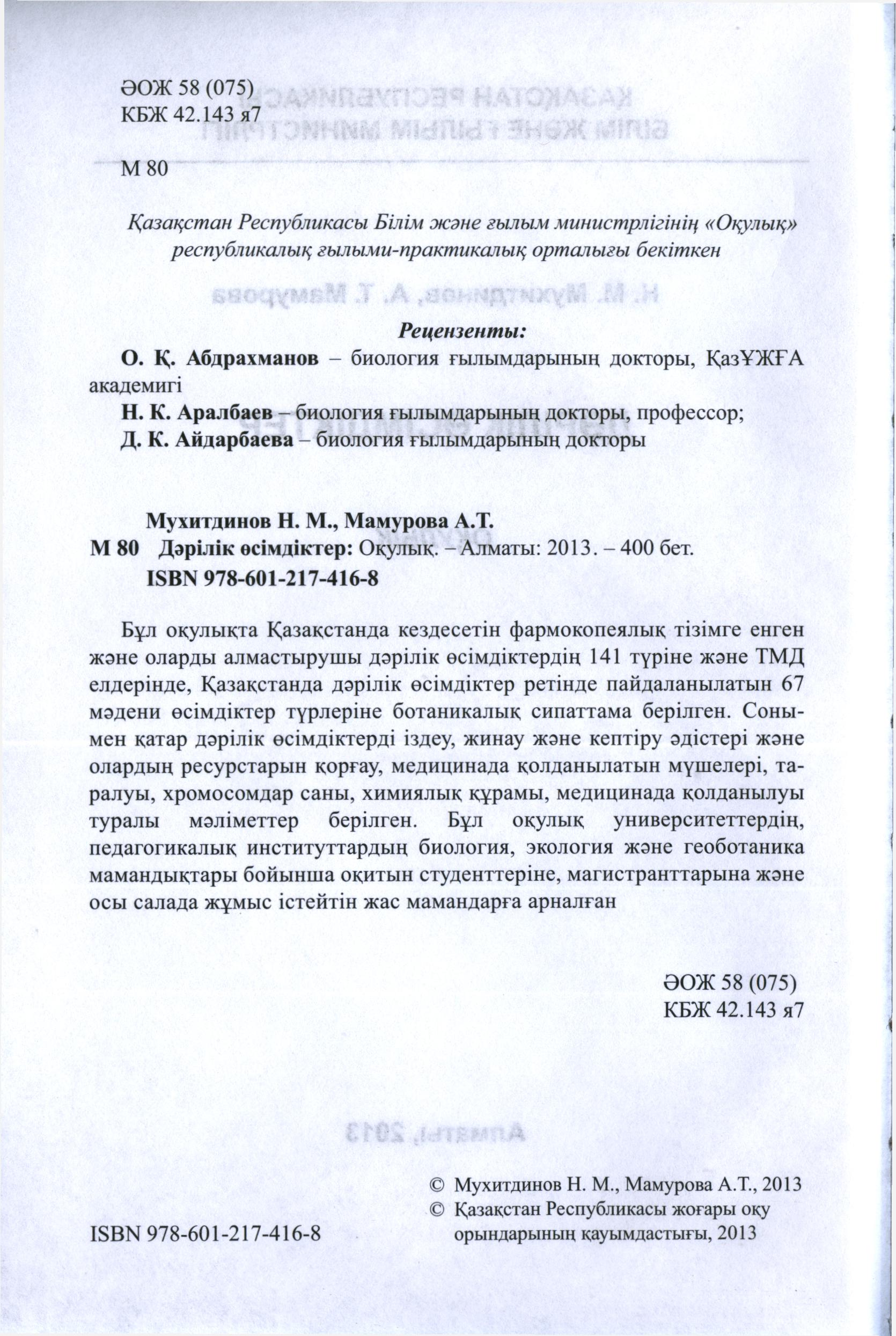 Баймурзаев Н. Б. Тыныбеков Б.М., Есжанов Б.., Аблайханова Н.Т., Кирбаева Д.К.