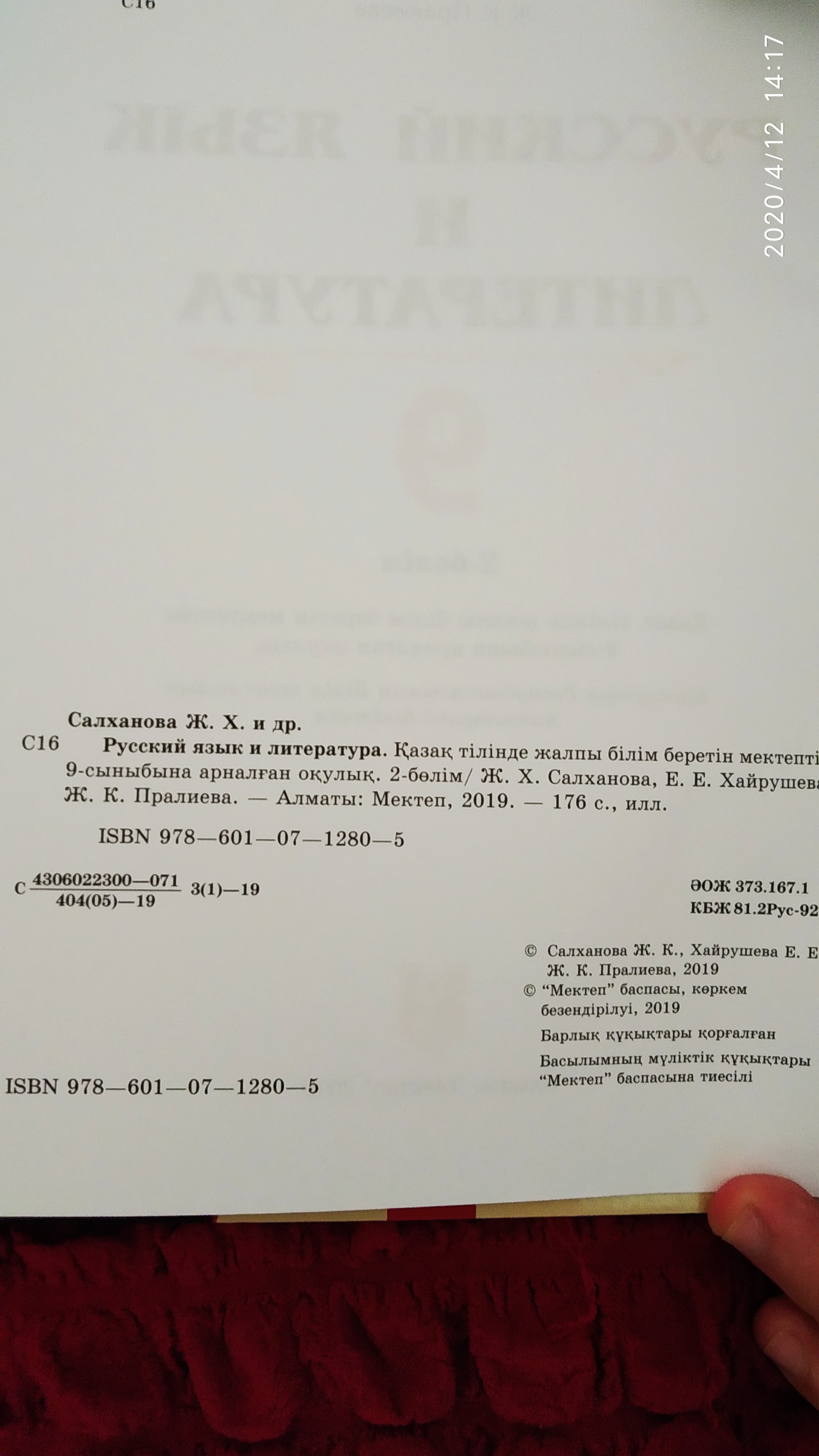 Русский язык и литература. Учебник для 9 классов общеобразовательных школ с казахским языком обучения. Ч. 2.