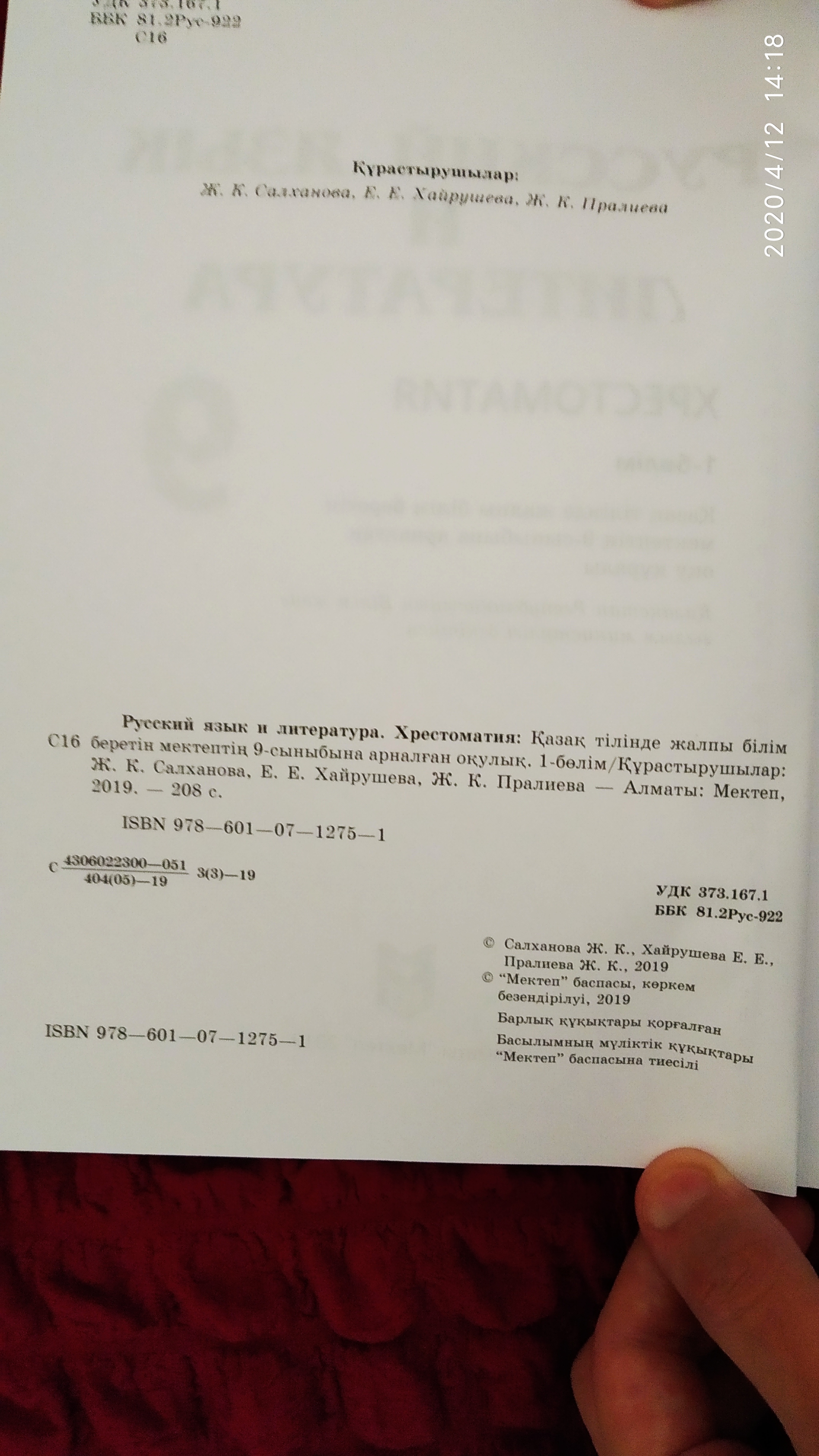 Русский язык и литература. Хрестоматия: для 9 классов общеобразовательных школ с казахским языком обучения. Ч. 1.
