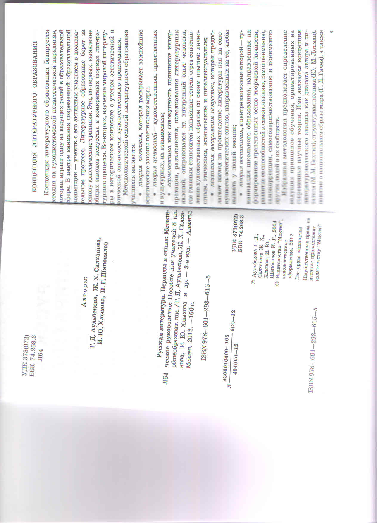 ) Г.Д.Аульбекова, Ж.Х.Салханова, И.Ю.Хлызова, И.Г.Шаповалов. Русская литература. Методическое руководство к учебнику для 8 кл.общеобр.школ с русским языком обучения.-Алматы: Мектеп, 2012, 158с., ISBN-978-601-293-615-5.