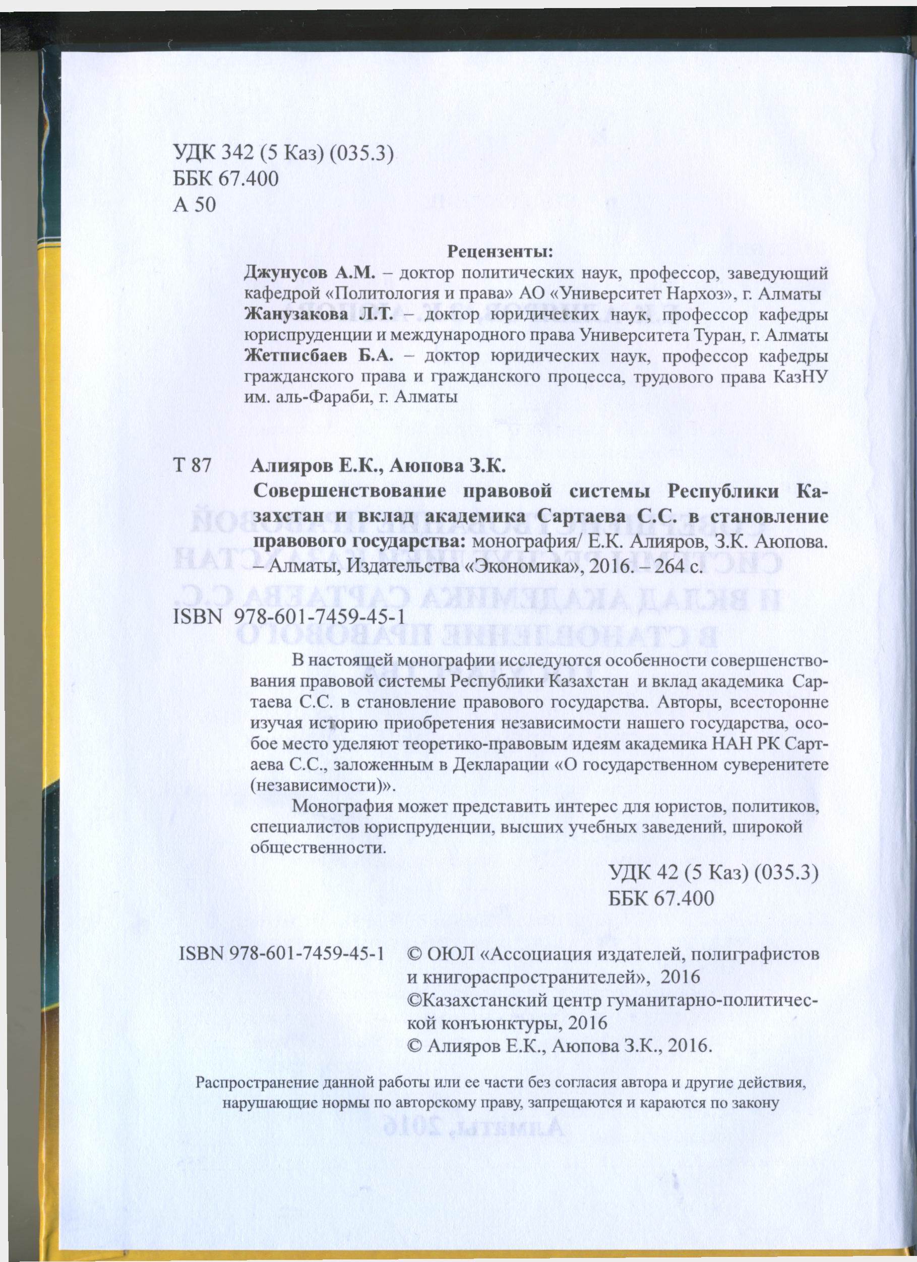 Байтенова Н. Ж. Бейсенов Б.К., Борбасова К.М., Затов К.А., Курманалиева А.Д., Мейрбаев Б.Б., Рысбекова Ш.С., Кулсариева А.Т., Абжалов С.У., Дуйсенбаева А.К.