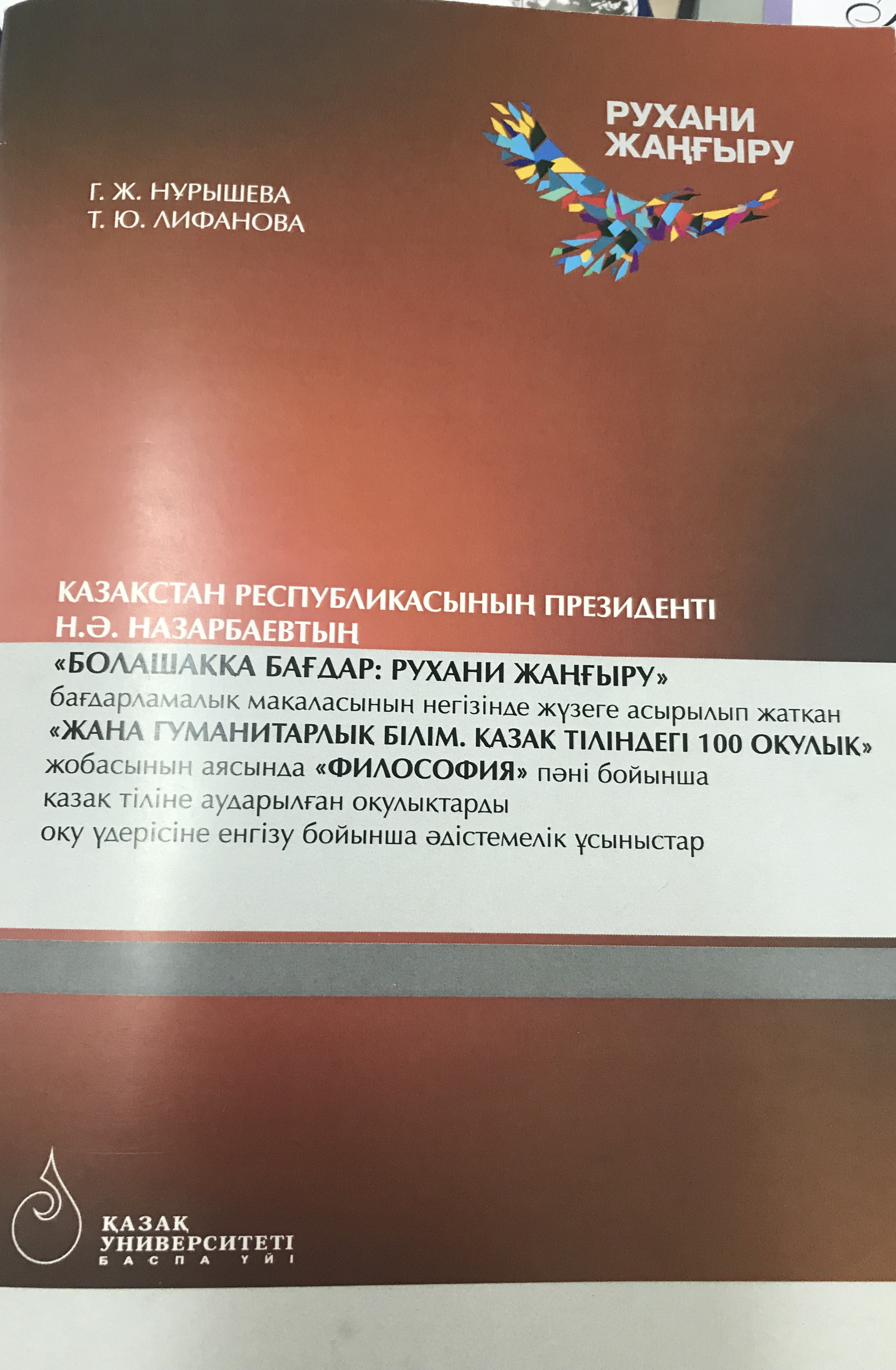 ҚР Президенті Н.Ә.Назарбаевтың "Болашаққа бағдар: рухани жаңғыру" бағдарламалық мақаласының негізінде жүзеге асырылып жатқан "Жаңа гуманитарлық білім. Қазақ тіліндегі 100 оқулық" жобасының аясында "Философия" пәні бойынша қазақ тіліне аударылған оқулықтарды оқу үдерісіне енгізу бойынша әдістемелік ұсыныстар