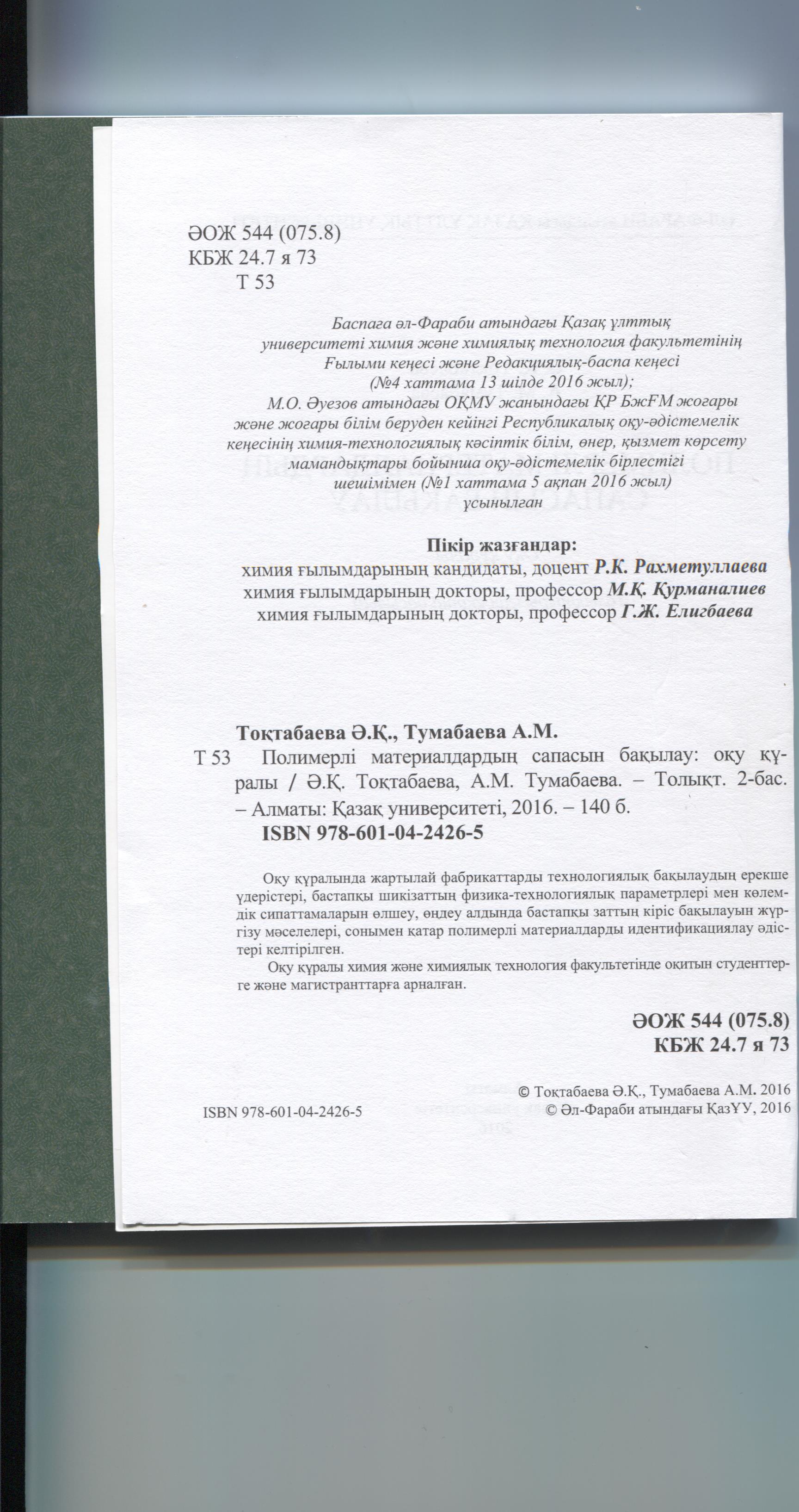 Жаксылыков А. Ж. Баянбаева Ж.А., Джолдасбекова Б.У., Сарсекеева Н.К.