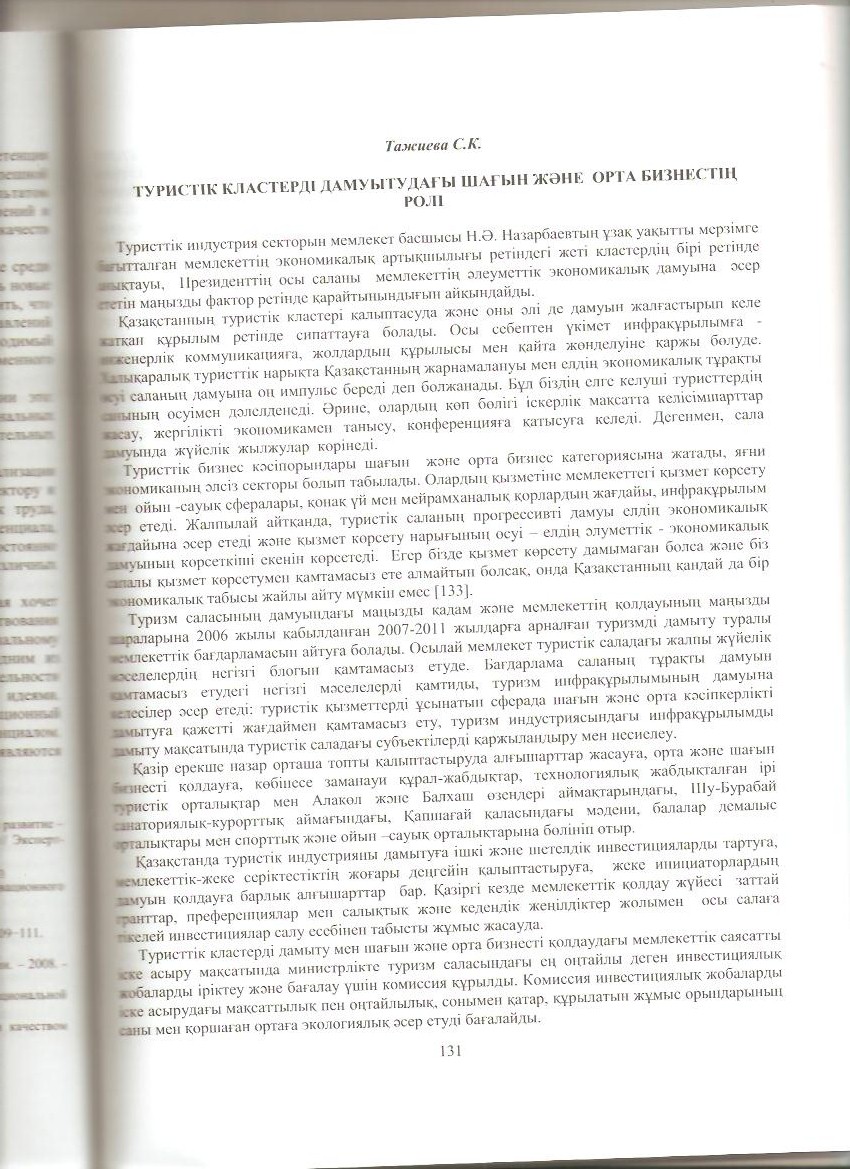 «Туристік кластерді дамуытудағы шағын және орта бизнестің ролі»