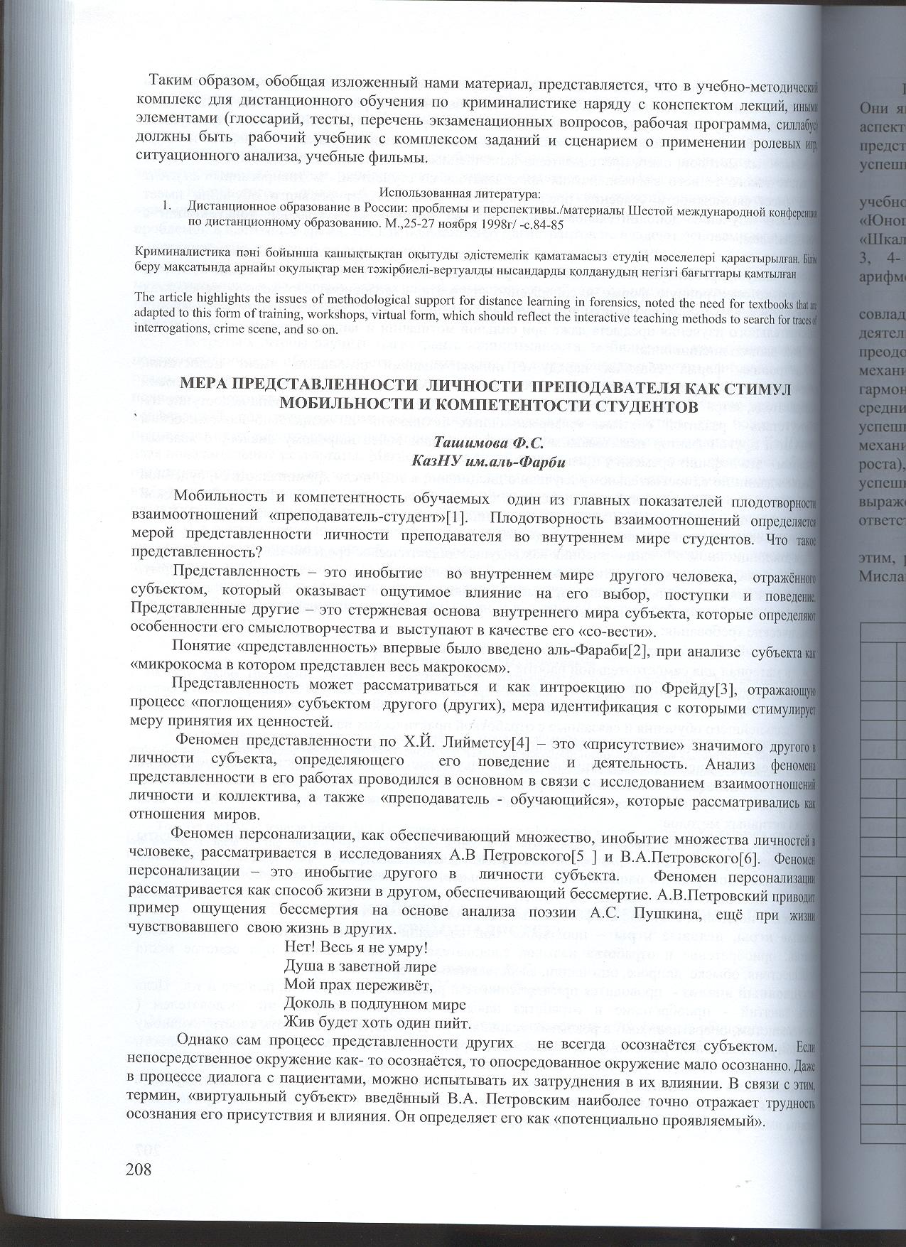 Профессиональное и личностное развитие педагога // Образовательный идеал как фактор социальных преобразований: материалы международной научно-практической конференции. 20-21 дек.2012 г. – Алматы: Қазақ университеті, 2012. – С. 97-102.