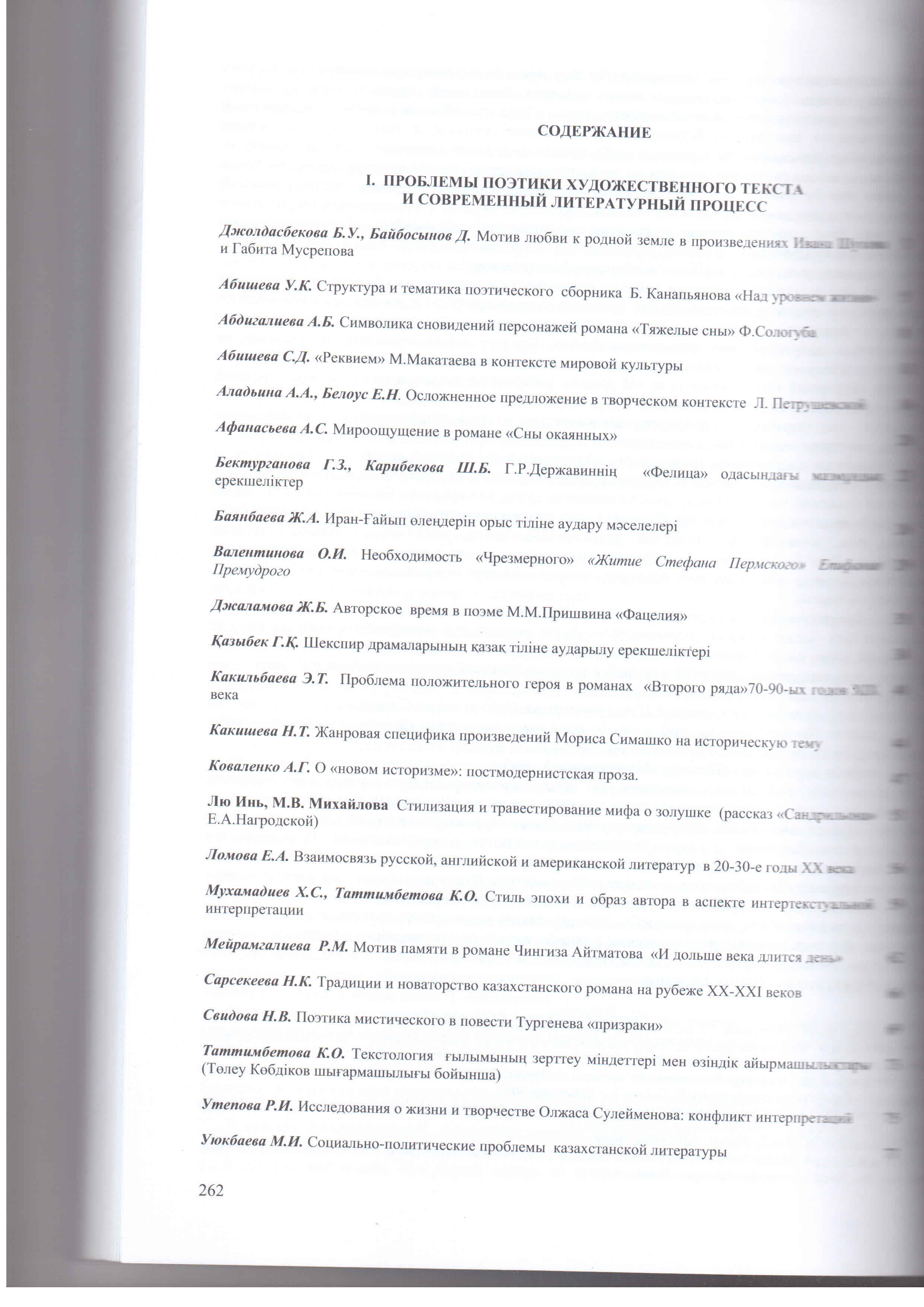 Структура и тематика поэтического сборника Б.Канапьянова «Над уровнем жизни» // Состояние и перспективы современной филологии: Багизбаевские чтения, Алматы: Казак ун-ты, 2014. С.5-8