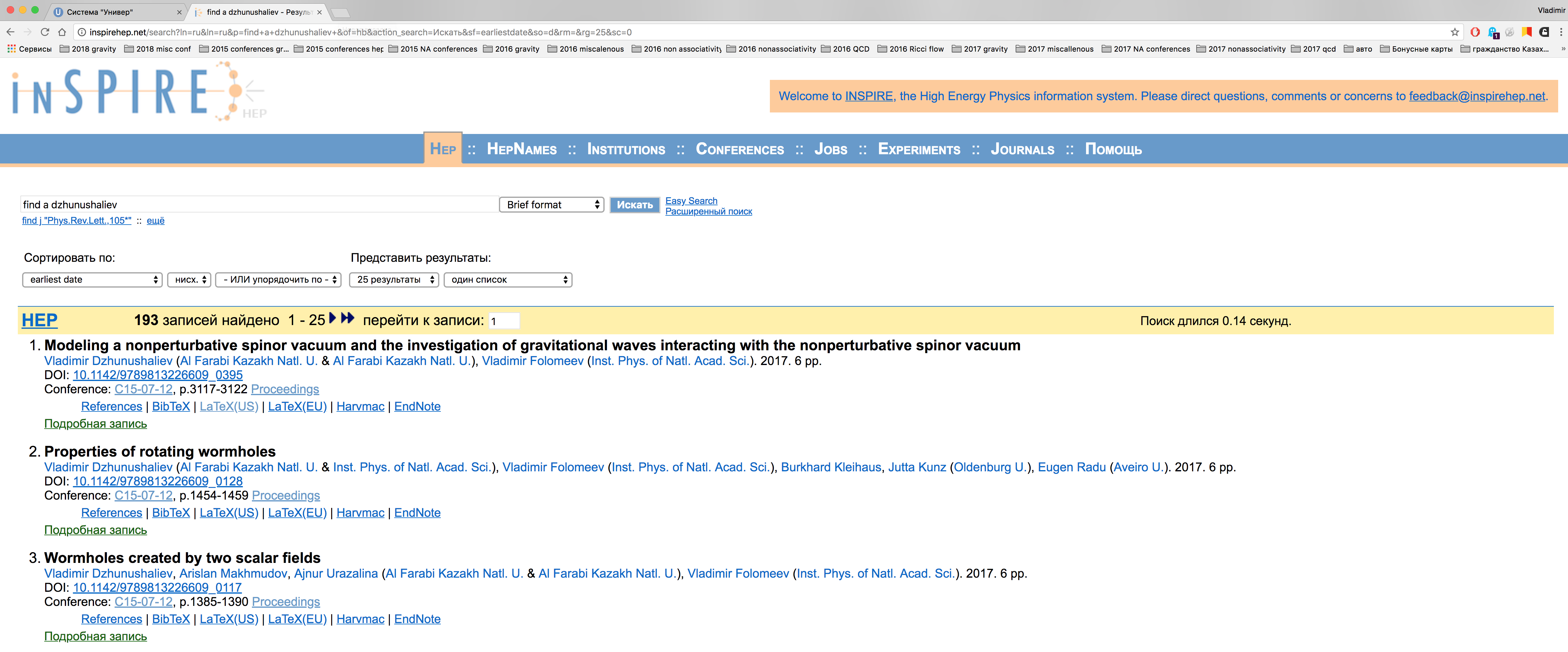 Main / of Physics and Technology / Theoretical and Nuclear Physics / Proceedings (theses, reports) in collections and materials of scientific conferences, symposia, seminars