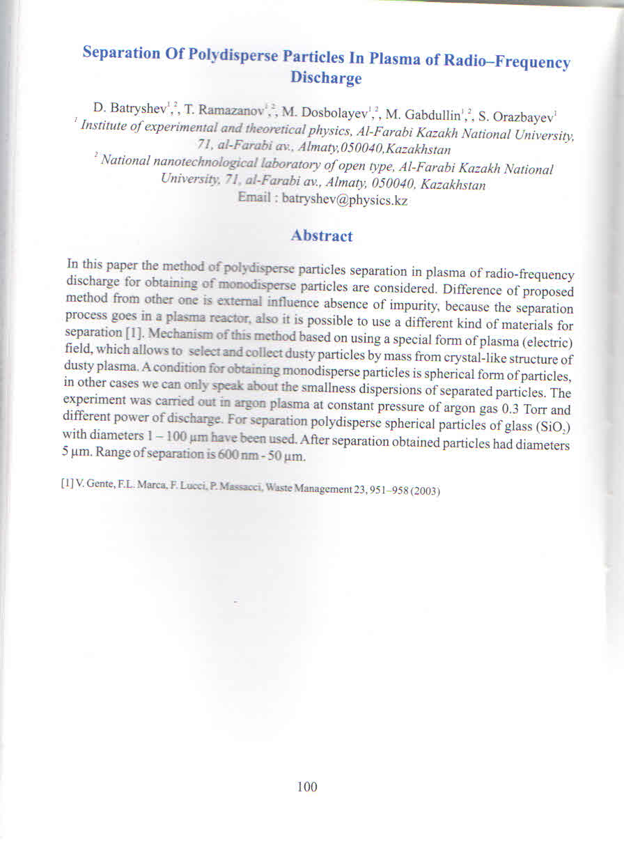 Main / of Physics and Technology / Plasma physics, nanotechnology and computer physics department / Proceedings (theses, reports) in collections and materials of scientific conferences, symposia, seminars