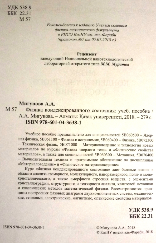 «Кристаллофизика негіздері I бөлім: кристаллография, кристаллохимия элементтері, математикалық және физикалық шамалардың симметриясы»