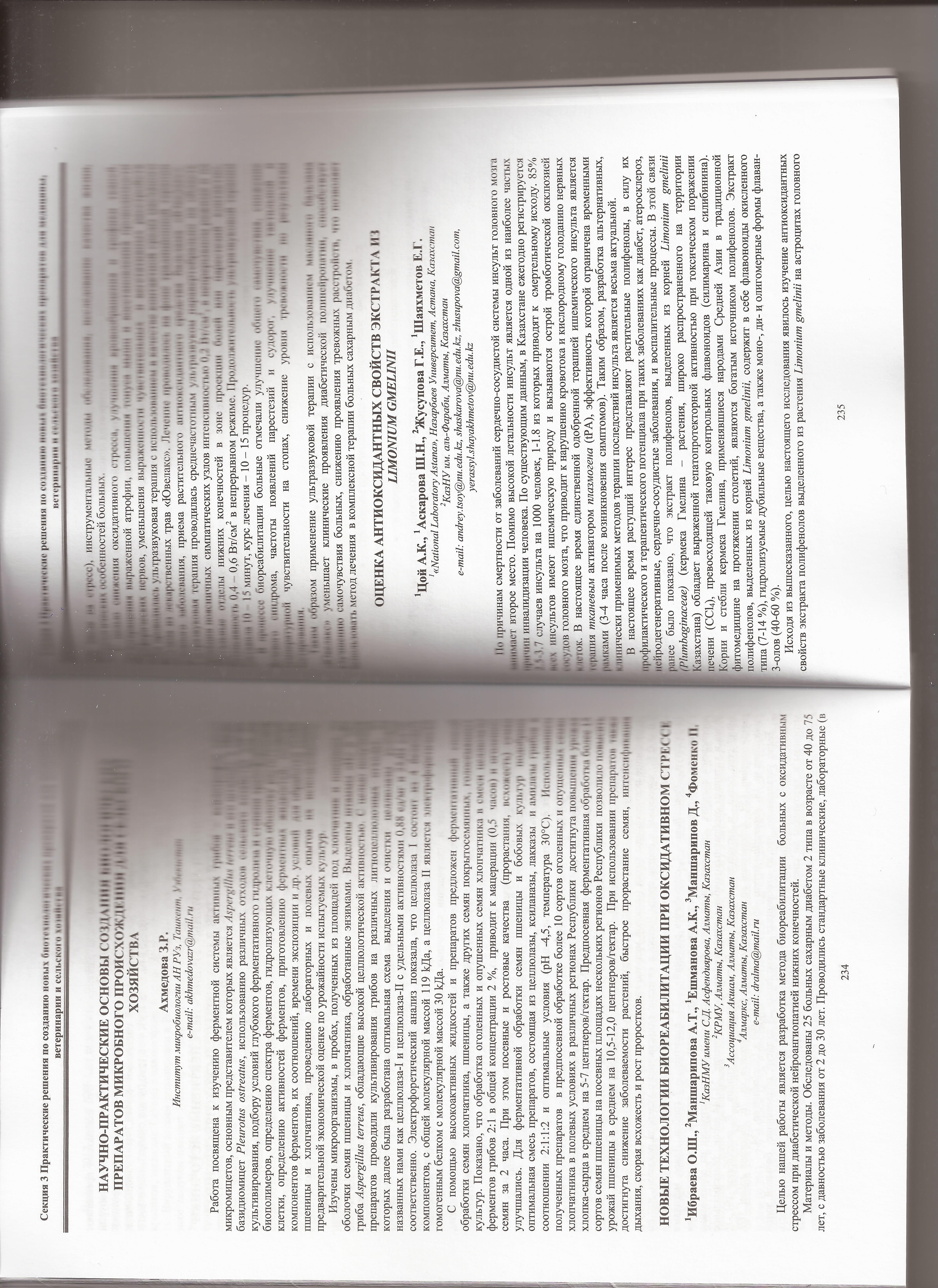 O.T. Zhilkibayev, S.A. Shoinbekova, A.P. Aueshov, K.T. Arynov, N.M. Bissenova CREATION AND INTRODUCTION OF HIGHLY EFFECTIVE ECOLOGICALLY SAFE REGULATORS OF PLANTS GROWTH(ZHOT-4) FOR INCREASE OF PRODUCTIVITY OF AGRICULTURAL CROPS // 6th INTERNATIONAL MULTIDISCIPLINARY CIENTIFIC GEOCONFERENCES & EXPO SGEM2016 IMPACT FACT