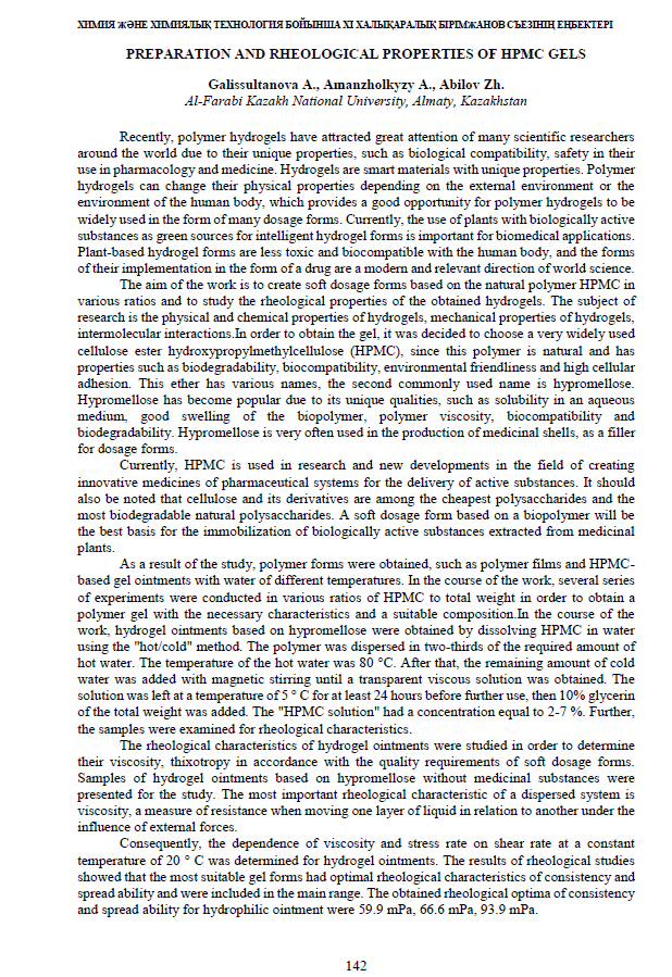 ПРИГОТОВЛЕНИЕ И РЕОЛОГИЧЕСКИЕ СВОЙСТВА ГЕЛЕЙ ГПМЦ