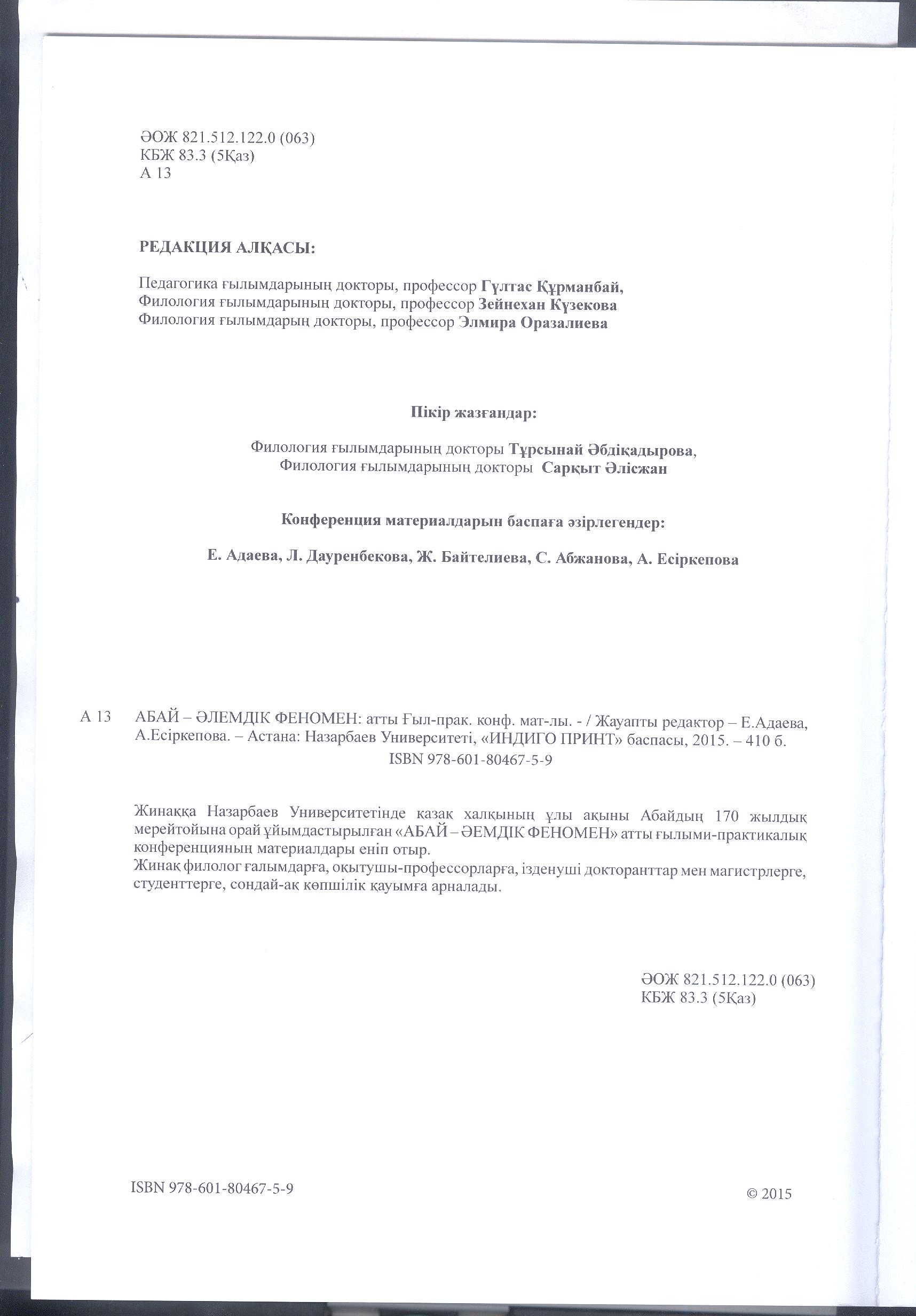 Main / Philological / Department of Kazakh linguistics named after A. Baytursinuly / Proceedings (theses, reports) in collections and materials of scientific conferences, symposia, seminars