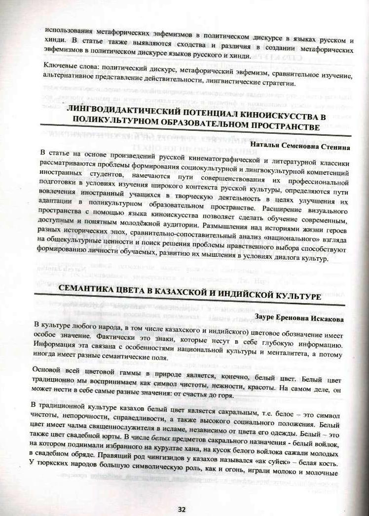 Искакова З. Е. Семантика цвета в казахской и индийской культурах 2017 - г. 2 - стр.