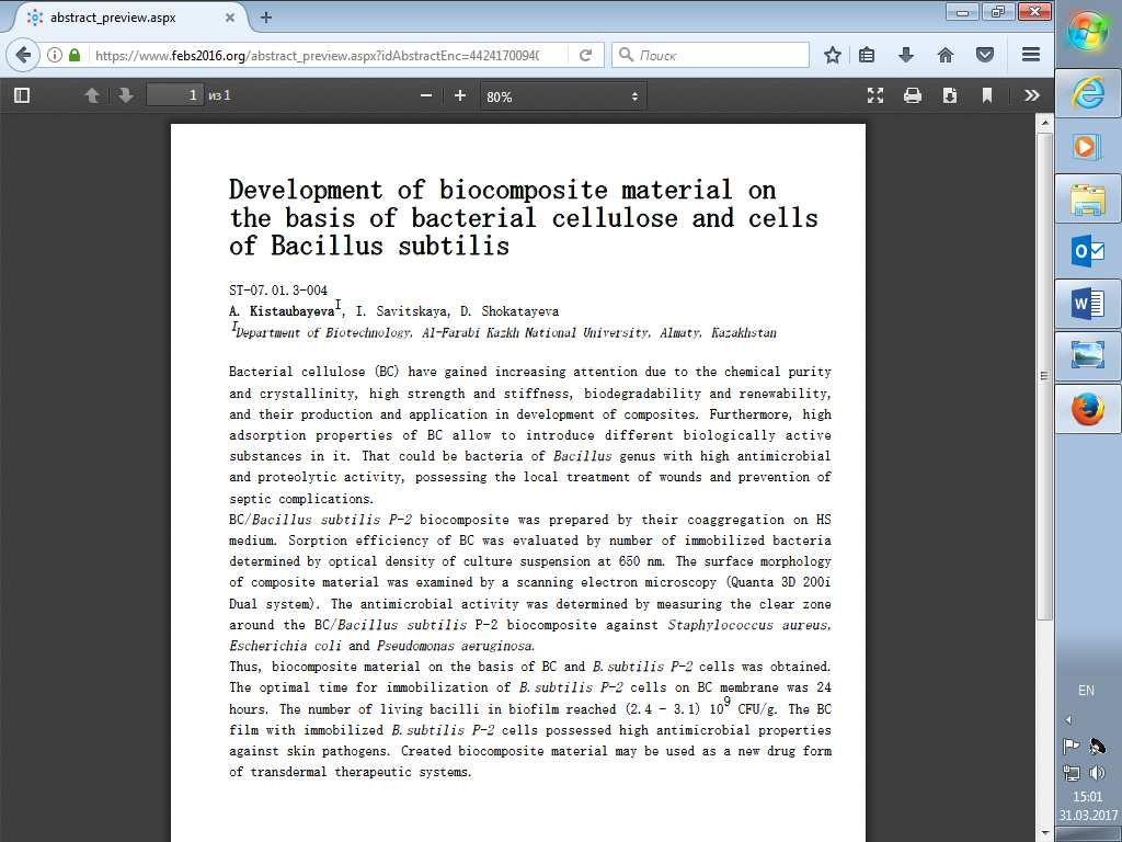 Main / Biology and Biotechnology / Biotechnology / Proceedings (theses, reports) in collections and materials of scientific conferences, symposia, seminars