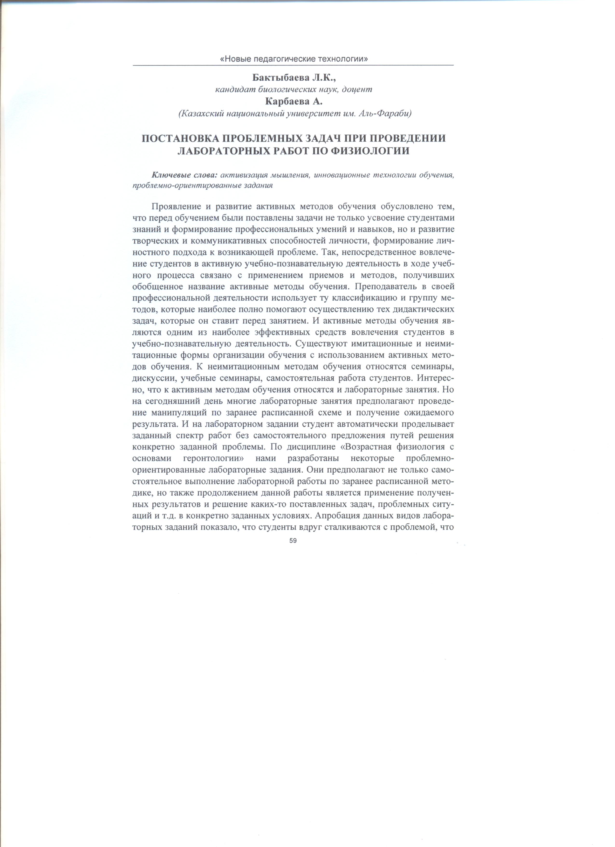 Постановка проблемных задач при проведении лабораторных работ по физиологии