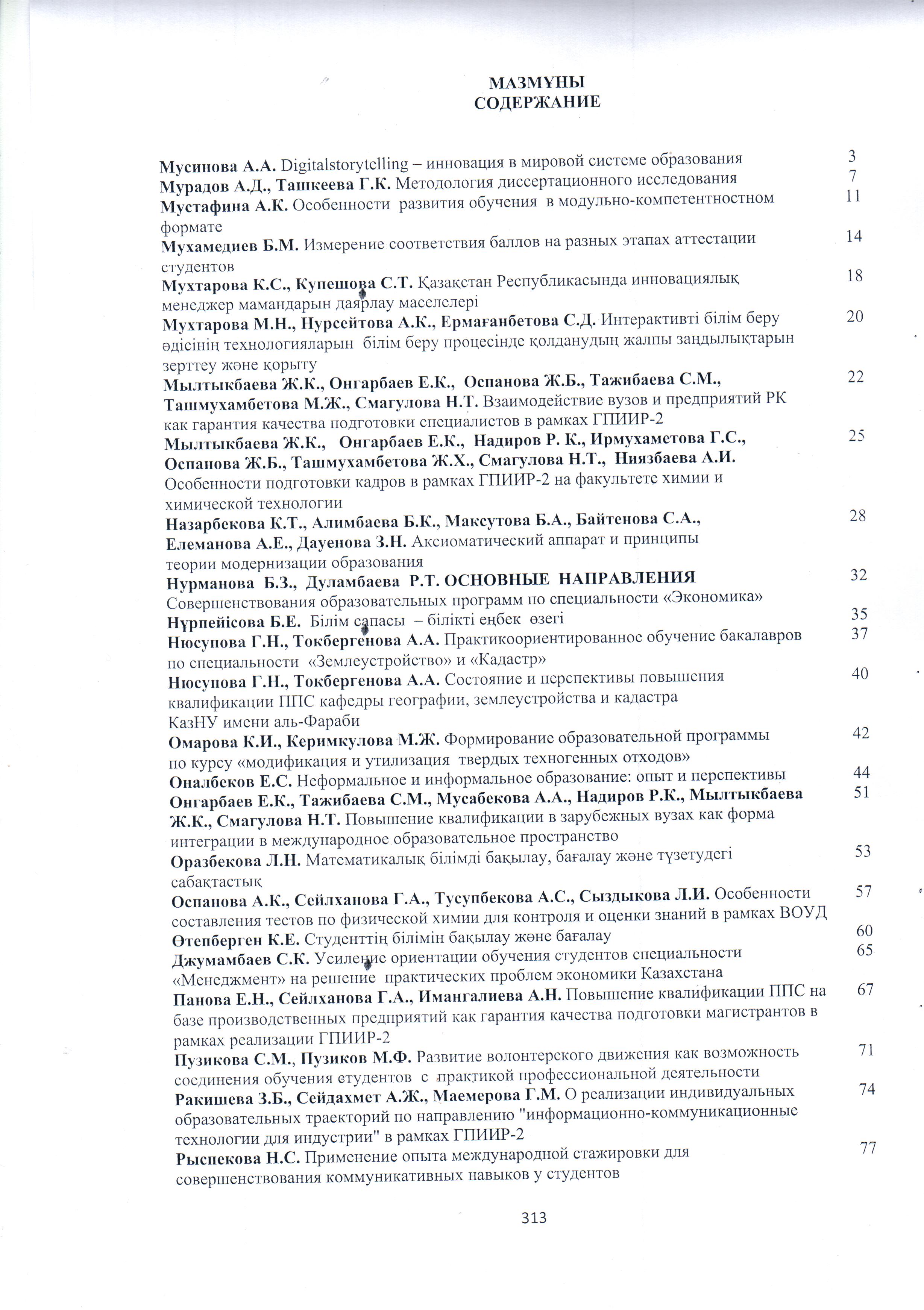 4. Султангалиева Г. Компетентностный подход как методологический принцип в преподавании исторических дисциплин // Модернизация образовательных программ: аккредитация и гарантия качества подготовки кадров 14-15.01.2016. Алматы.Қазақ университеті. 2016. Книга 4.C.23-35. ( в соавторстве Алтаев А.)