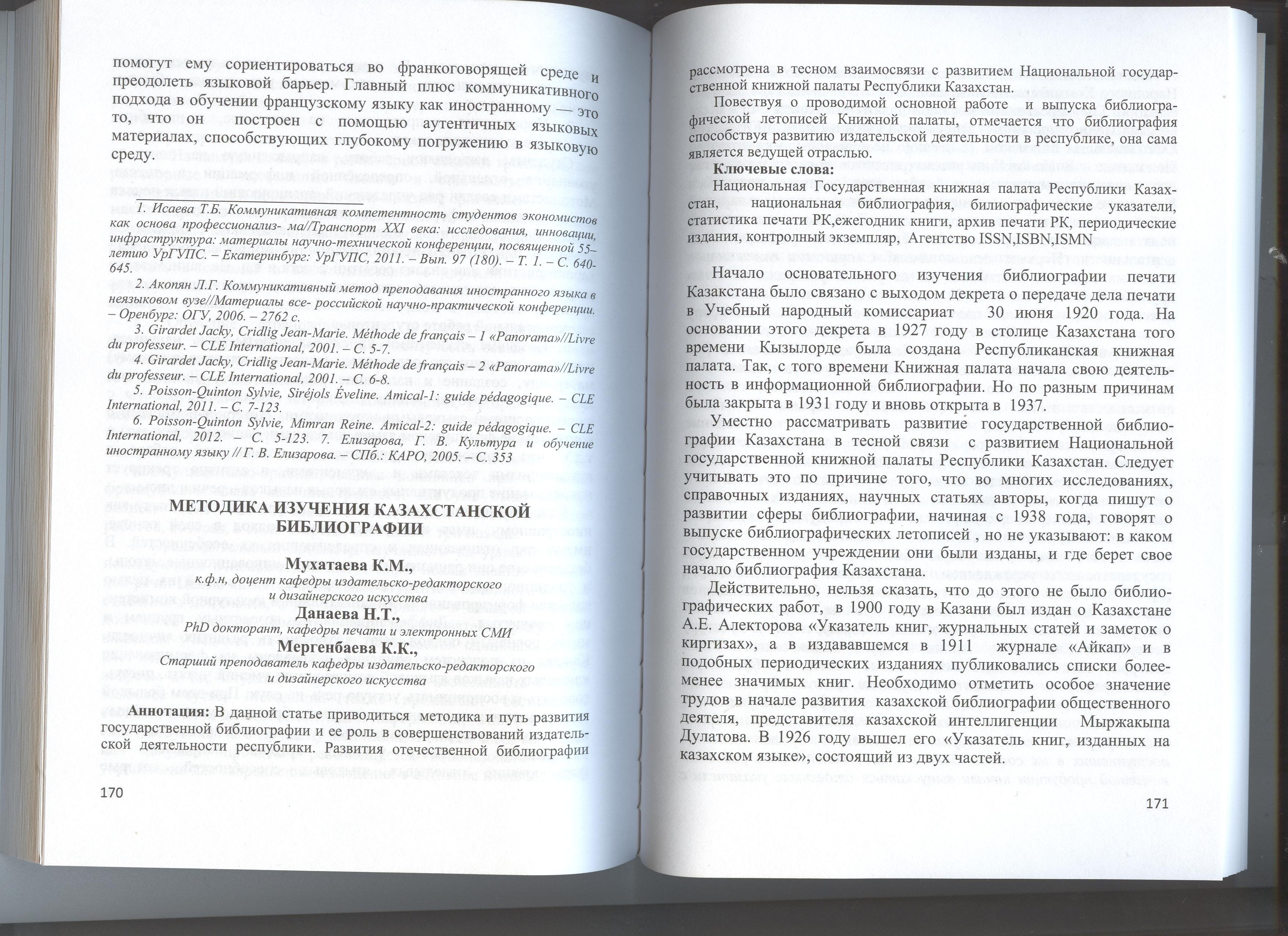 Методика изучения Казахстанской библиографии