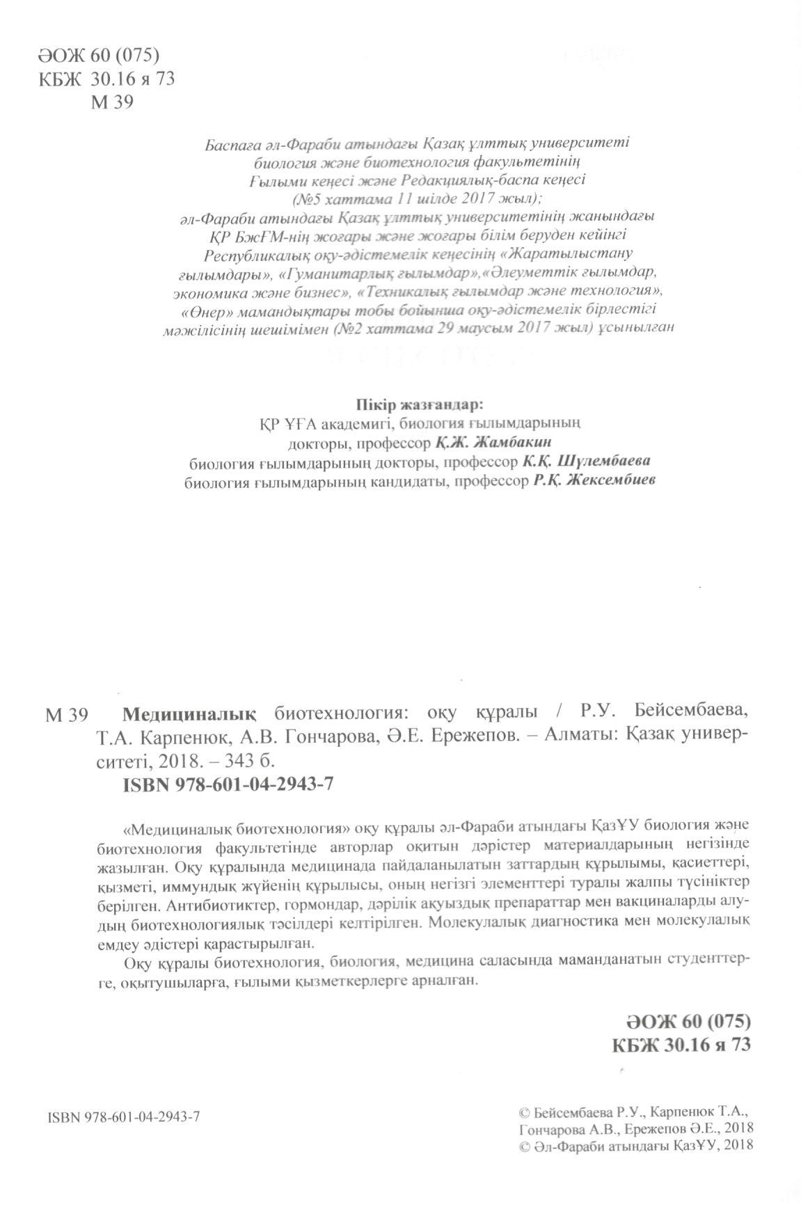 Кулбаева М. С. Кошкимбаев К.., Басыгараев Ж.М., Атанбаева Г.К., Уршеева Б.И., Тусупбекова Г.А., Ыдырыс Ә.., Аблайханова Н.Т.