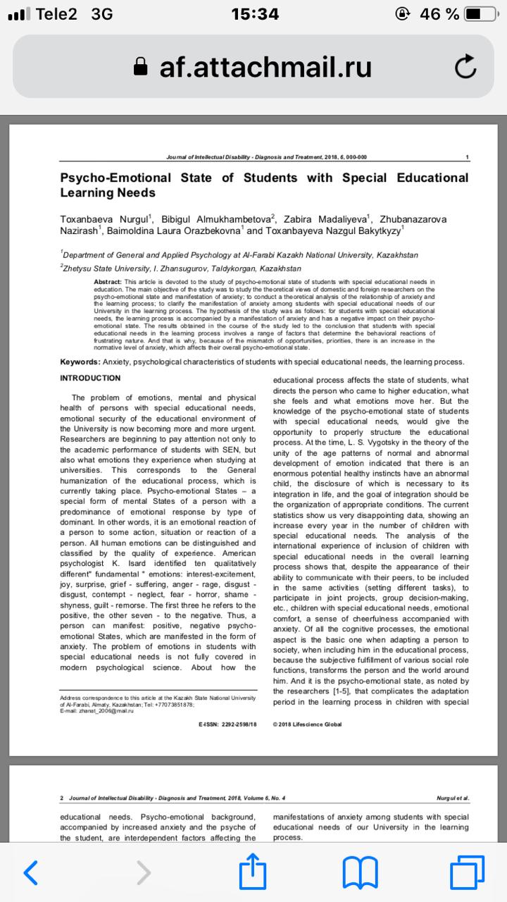 1.PSYCHO-EMOTIONAL STATE OF STUDENTS WITH SPECIAL EDUCATIONAL LEARNING NEEDS. Journal of intellectual disability diagnosis and treatment