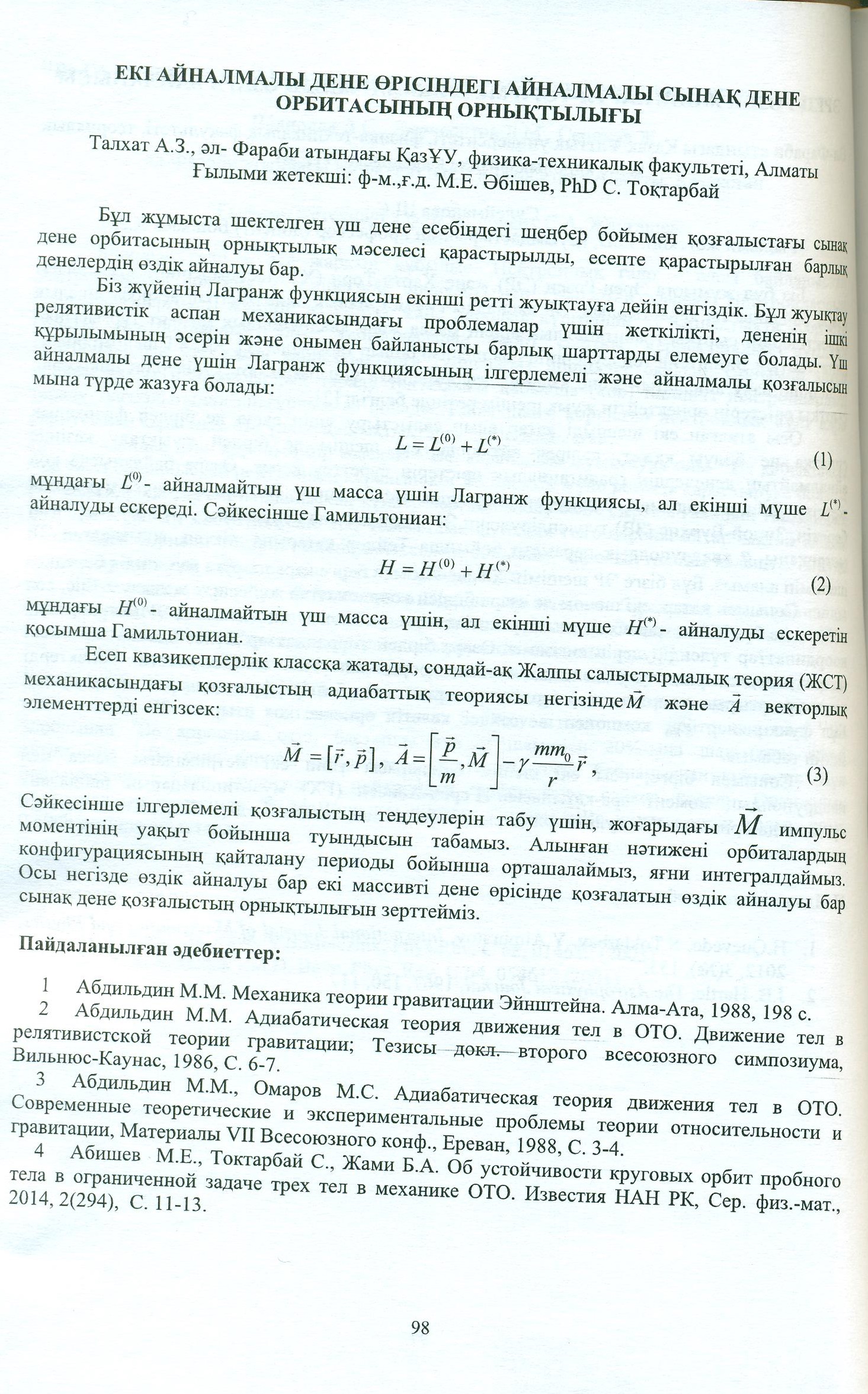 Басты бет / Физика-техникалық / Теориялық және ядролық физика / Жинақтардағы, ғылыми мәслихаттардағы, симпозиумдардағы, семинарлардағы еңбектер (тезистер, баяндамалар)