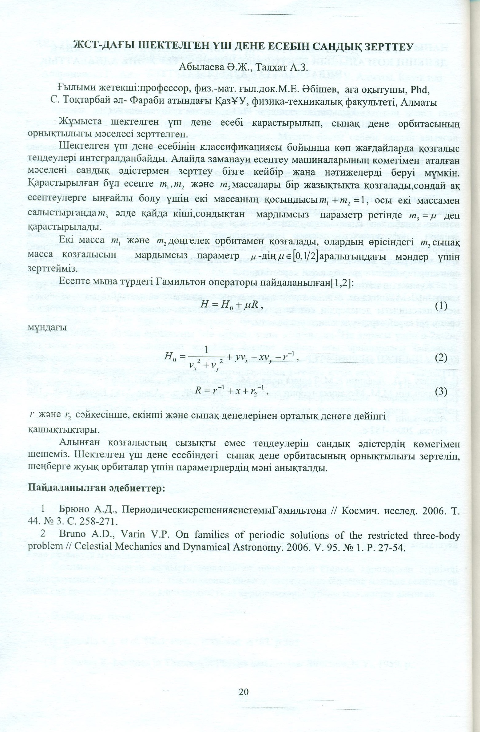 ЖСТ- дағы шектелген үш дене есебін сандық зерттеу