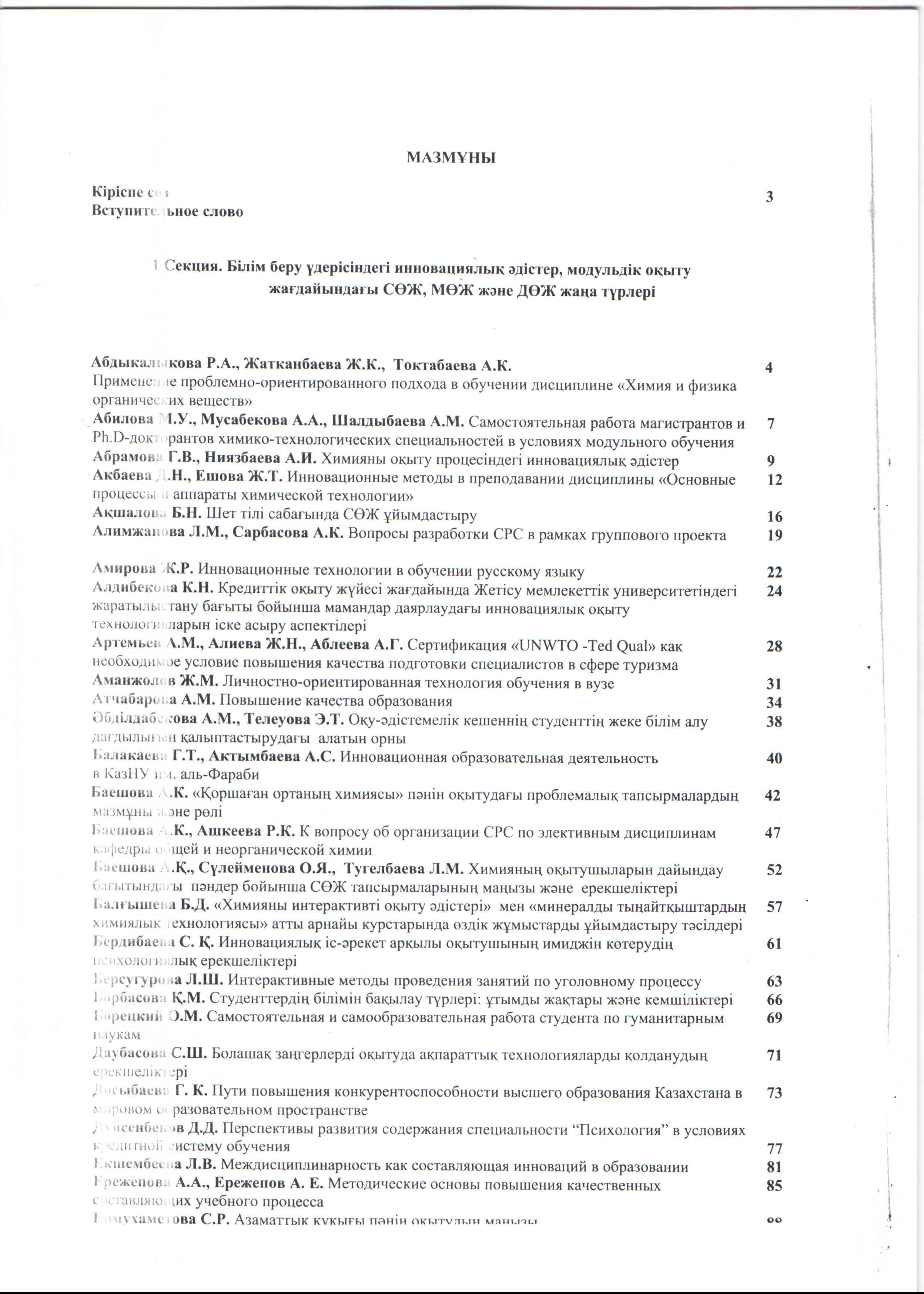 Интерактивные методы проведения занятий по уголовному процессу: Материалы 42-ой международной научно-методической конференции «Инновации в образовательной деятельности и вопросы повышения качества обучения», 27-28 января 2012г. – КазНУ им. аль-Фараби. – С. 63-66.