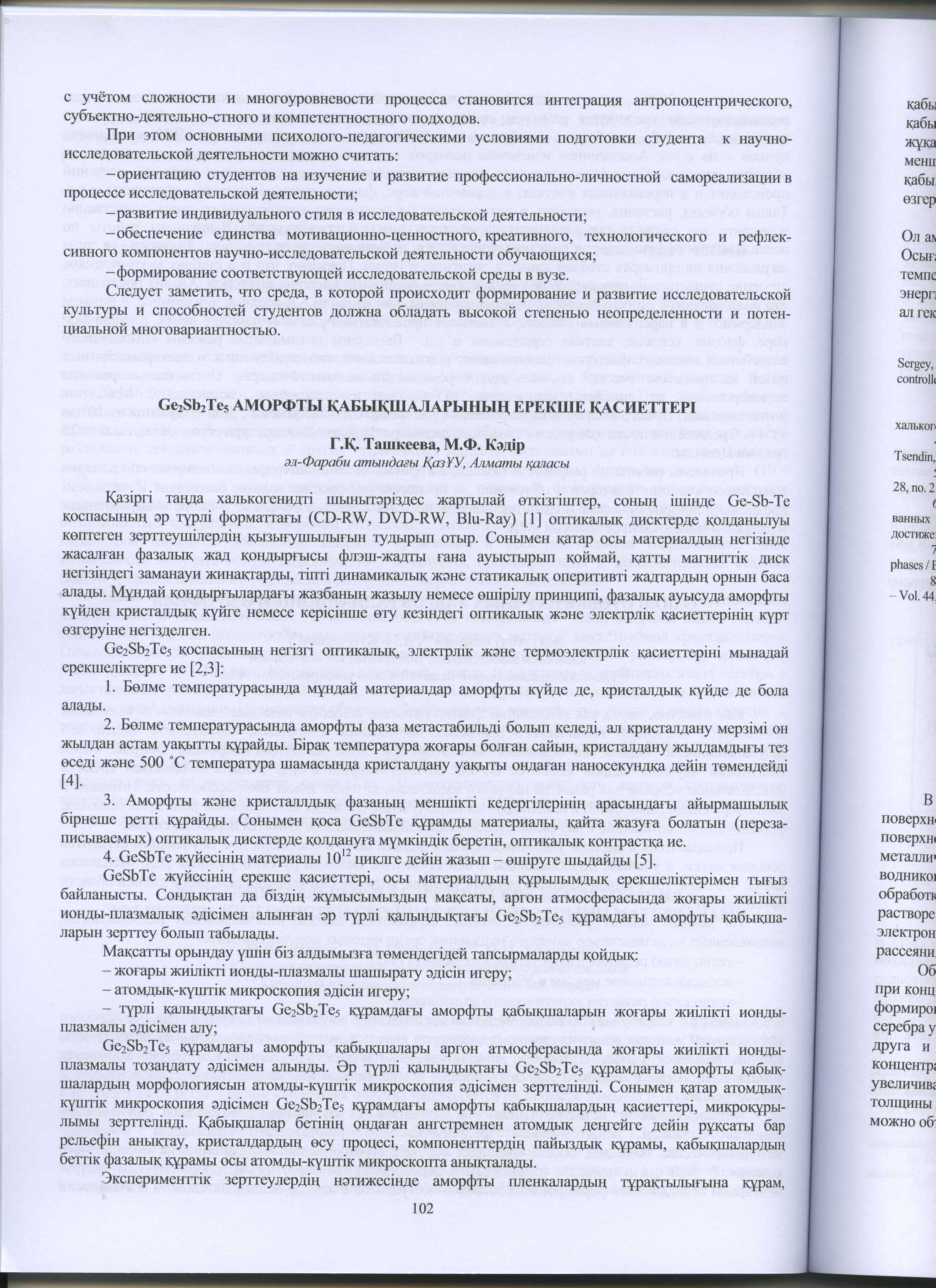 Басты бет / Физика-техникалық / Плазма физикасы, нанотехнология және компьютерлік физика кафедрасы / Жинақтардағы, ғылыми мәслихаттардағы, симпозиумдардағы, семинарлардағы еңбектер (тезистер, баяндамалар)