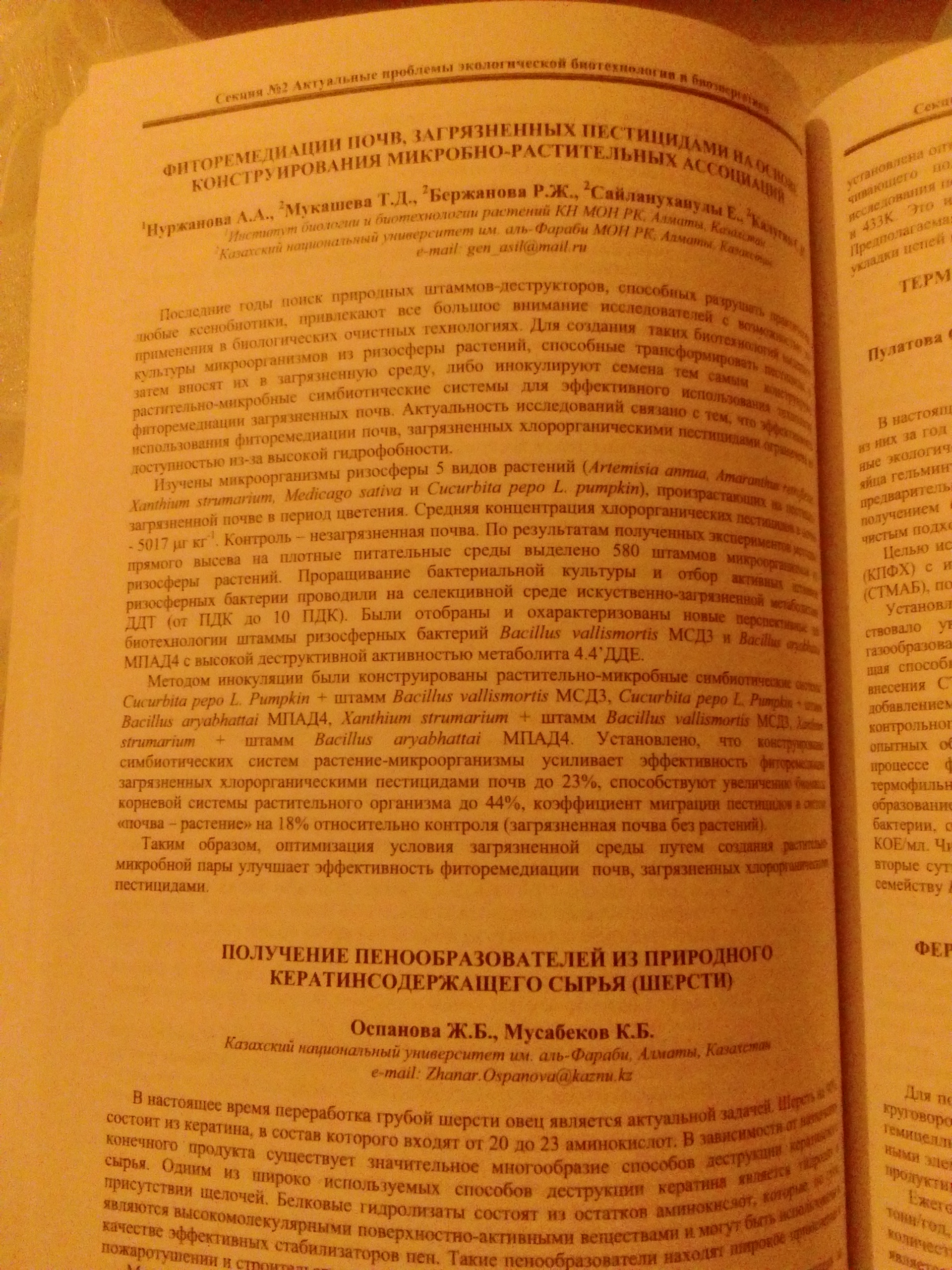 O.T. Zhilkibayev, S.A. Shoinbekova, A.P. Aueshov, K.T. Arynov, N.M. Bissenova CREATION AND INTRODUCTION OF HIGHLY EFFECTIVE ECOLOGICALLY SAFE REGULATORS OF PLANTS GROWTH(ZHOT-4) FOR INCREASE OF PRODUCTIVITY OF AGRICULTURAL CROPS // 6th INTERNATIONAL MULTIDISCIPLINARY CIENTIFIC GEOCONFERENCES & EXPO SGEM2016 IMPACT FACT
