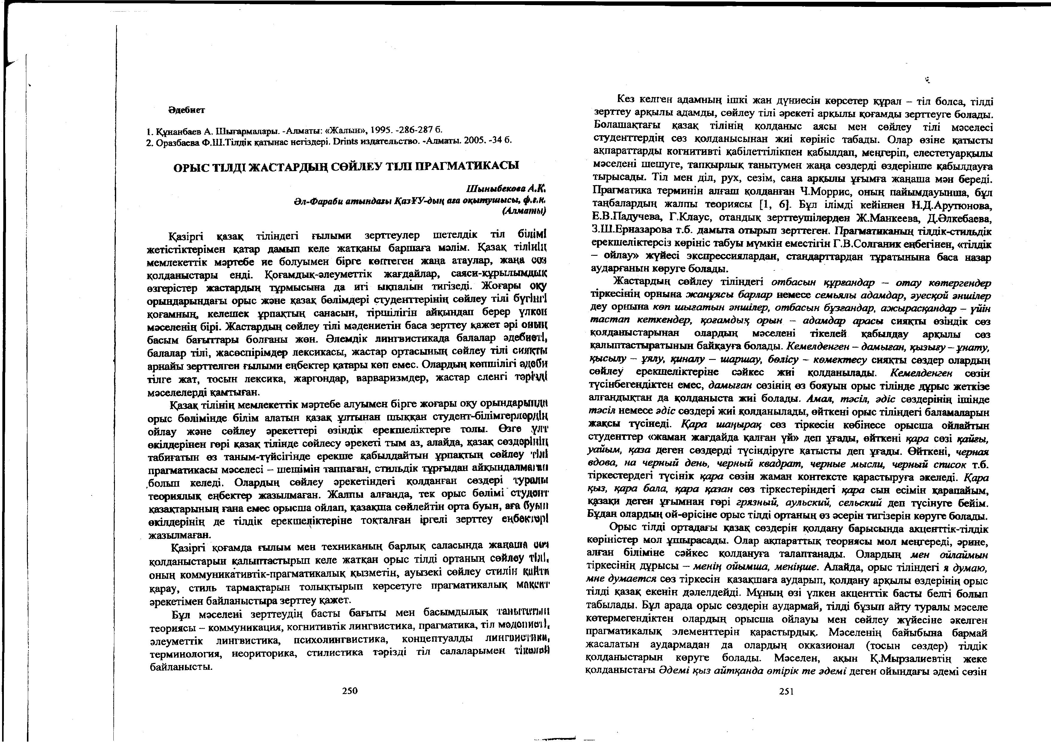 Басты бет / Филология / А. Байтұрсынұлы атындағы Қазақ тіл білімі кафедрасы / Жинақтардағы, ғылыми мәслихаттардағы, симпозиумдардағы, семинарлардағы еңбектер (тезистер, баяндамалар)