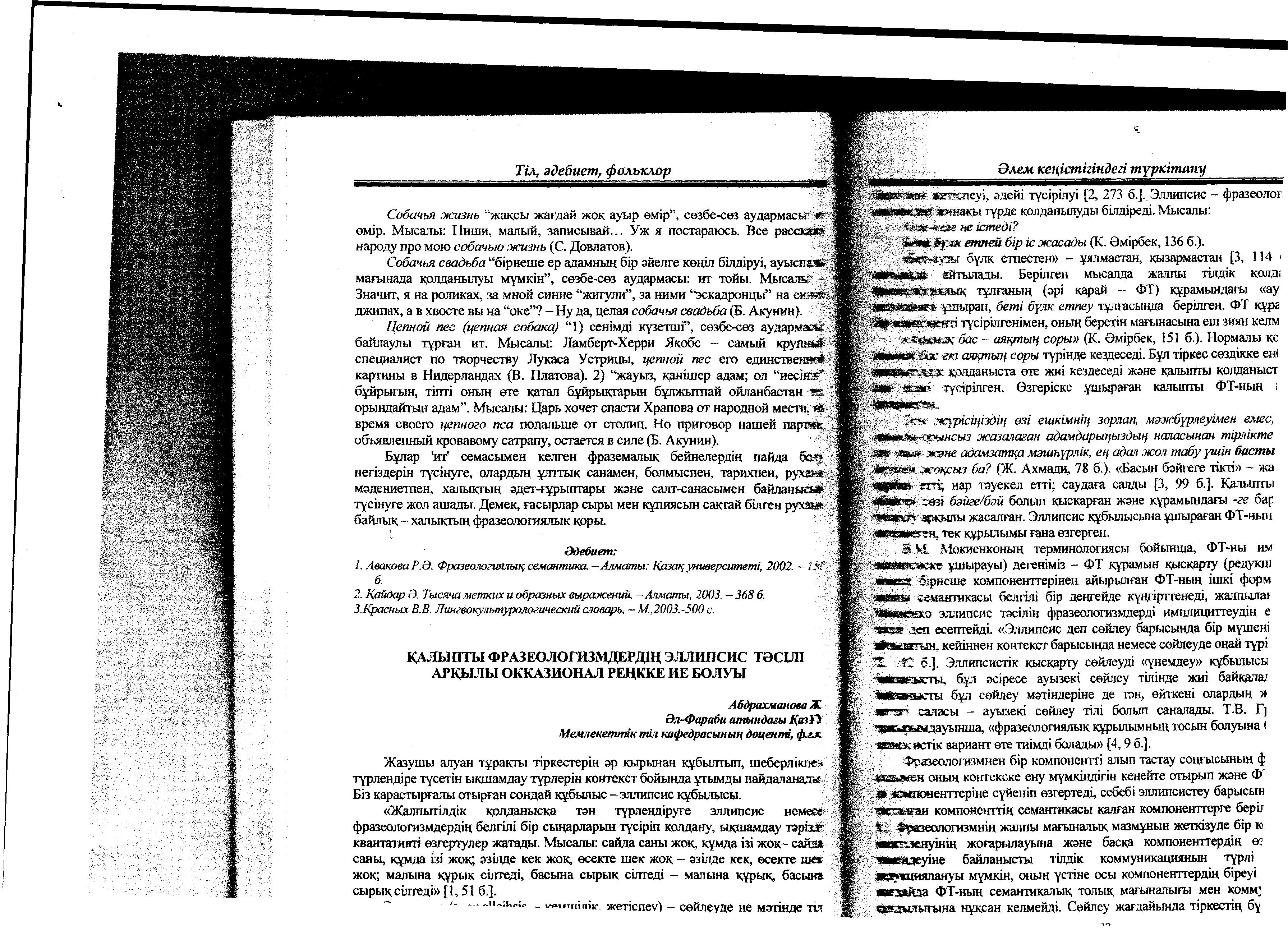 Фразеологияның қазіргі жағдайы мен әлемдік ғылымдағы даму тенденциясы