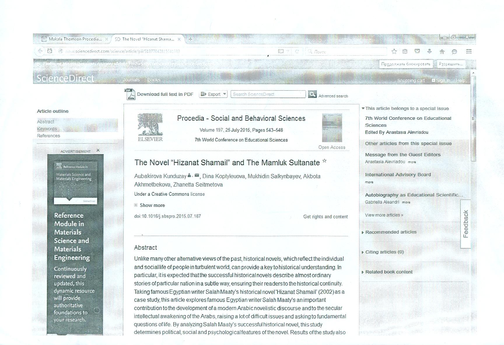 Басты бет / Шығыстану / Таяу Шығыс және Оңтүстік Азия кафедрасы / Жинақтардағы, ғылыми мәслихаттардағы, симпозиумдардағы, семинарлардағы еңбектер (тезистер, баяндамалар)