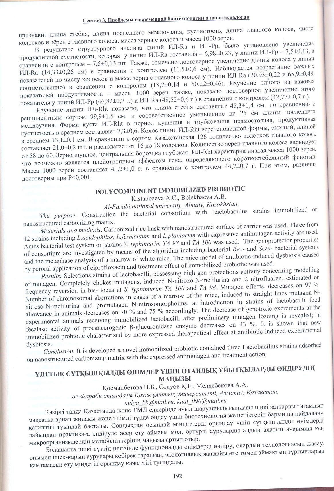 Басты бет / Биология және биотехнология / Биотехнология / Жинақтардағы, ғылыми мәслихаттардағы, симпозиумдардағы, семинарлардағы еңбектер (тезистер, баяндамалар)