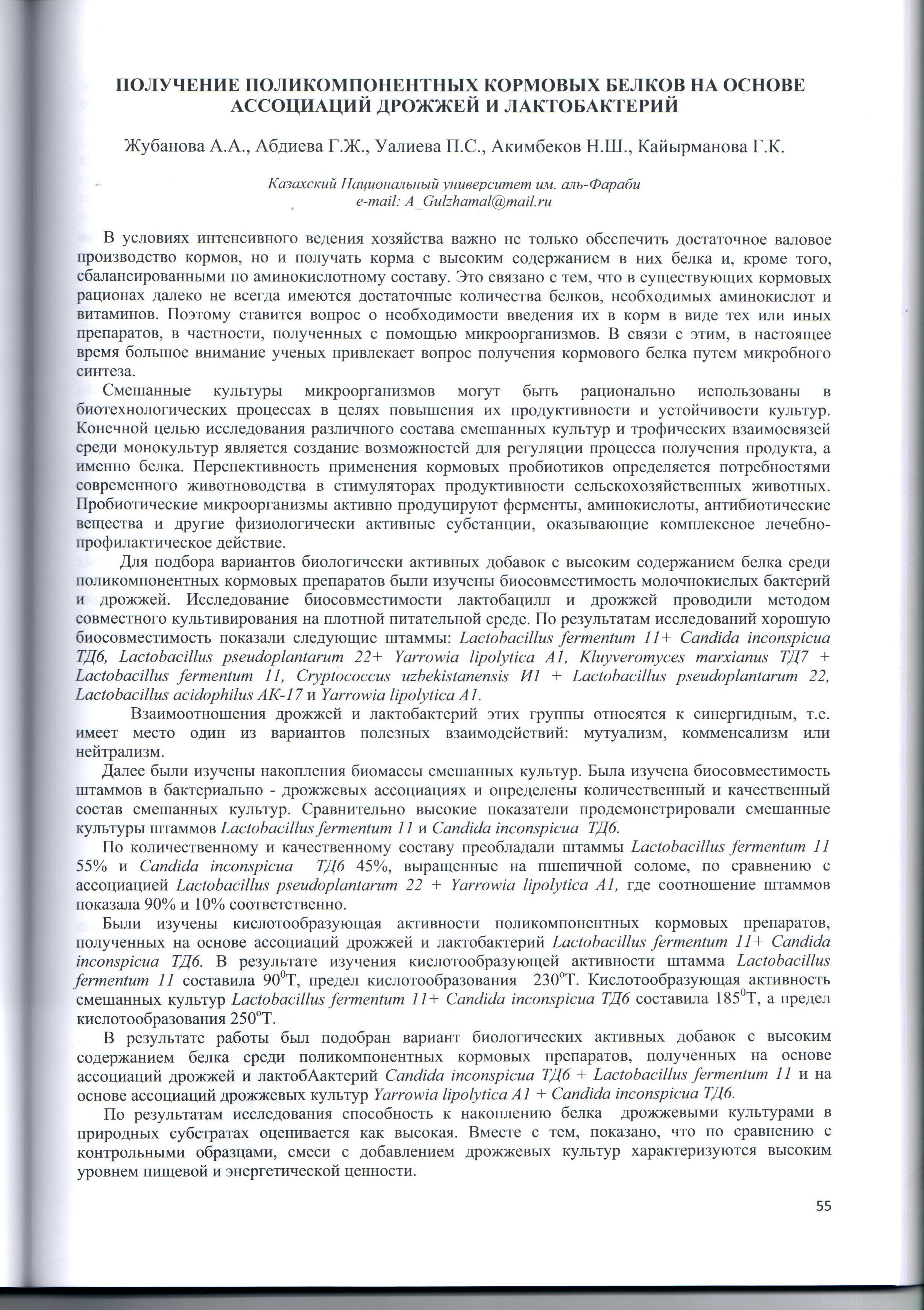 Басты бет / Биология және биотехнология / Биотехнология / Жинақтардағы, ғылыми мәслихаттардағы, симпозиумдардағы, семинарлардағы еңбектер (тезистер, баяндамалар)