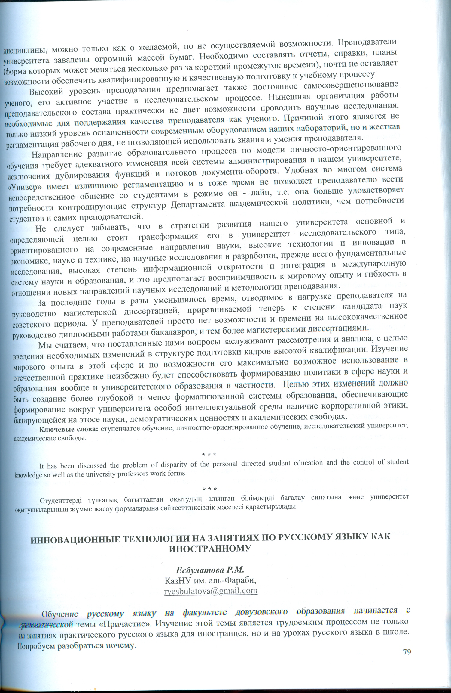 Подготовка специалистов в одласти биомедицины и биофизики в казахском национальном университете имени аль-Фараби в соответствии с требования инновационного обучения